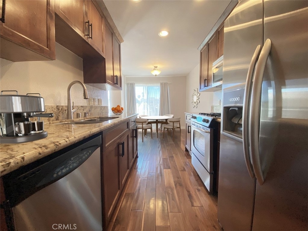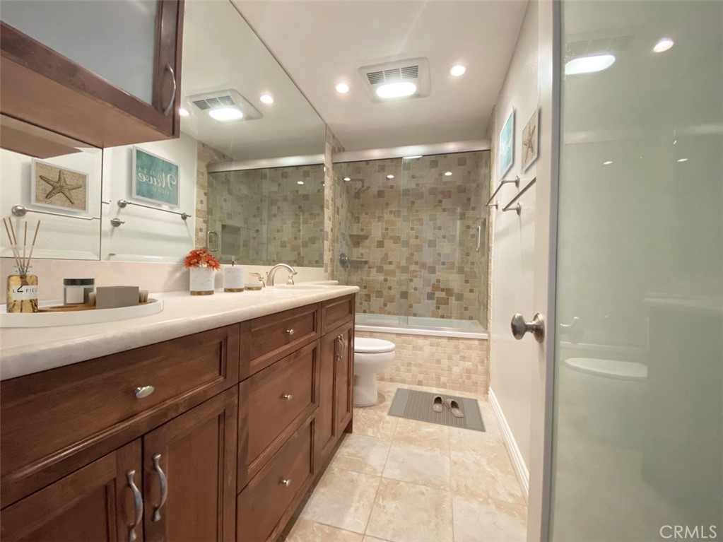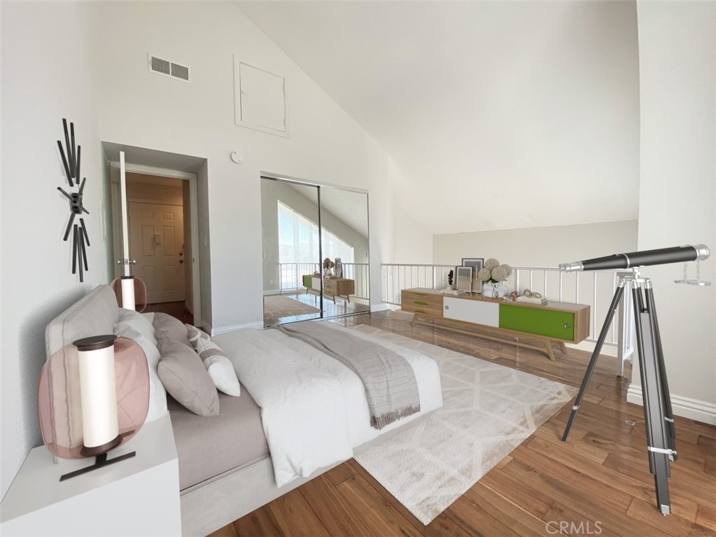 Perched above the quiet street of Colbath Ave in Sherman Oaks, this impeccably appointed Penthouse style loft condo is sure to amaze. Dramatic ceiling heights greet you the moment you step past your front door and stay with you throughout most of the main living area. Step out onto your balcony and enjoy a California sunset, complete with backlit palms and mountains in the distance. Beyond the spacious Dining area and through the granite and stainless steel appliances reveal a pantry and guest bathroom. Head up the stairs to the Owner's aerie (Master Bedroom) for more vaulted ceilings and views to your living spaces below. The private master bathroom is richly appointed with tile floors, glass partitions, and massive mirrors. Custom made window treatments let in ample light while simultaneously softening the SoCal sun. This is an incredible combination of light, space, convenience and style. Some photos are virtually staged. * Brand new Lennox HVAC * Ground level brightly lite garage parking with two assigned parking spots * Top front corner unit with only one shared wall with neighbors * Short distance to Westfield Mall, Trader Joe's, shops and restaurants along Ventura Blvd * On a quiet street with limited through traffic * Dedicated w/d steps away in the laundry room on the same floor * Short commute to Burbank Studios such as NBCUniversal, CBS, Warner Brothers, Disney and more.