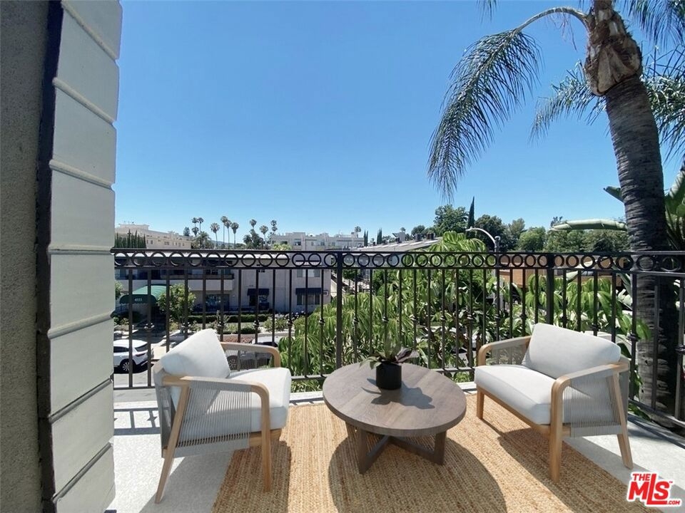 Nestled above Colbath Ave in serene Sherman Oaks, this exquisitely designed loft condo boasts Penthouse-style living. Upon entry, be greeted by soaring ceilings that extend through most of the main living area. Step onto the balcony to savor California sunsets against a backdrop of palm trees and distant mountains. Beyond the spacious dining area, granite countertops and stainless steel appliances lead to a pantry and guest bathroom. Ascend the stairs to the Owner's retreat, where vaulted ceilings and views of the living spaces below await. The master bathroom features luxurious tile floors, glass partitions, and expansive mirrors. Custom window treatments allow ample light while softening the SoCal sun. This residence offers a perfect blend of light, space, convenience, and style. Highlights include a new Lennox HVAC system, two assigned parking spots in a well-lit garage, and minimal shared walls with neighbors. Enjoy short proximity to Westfield Mall, Trader Joe's, and Ventura Blvd's shops and restaurants. Additional perks include nearby laundry facilities and a short commute to Burbank Studios like NBCUniversal, CBS, Warner Brothers, and Disney.