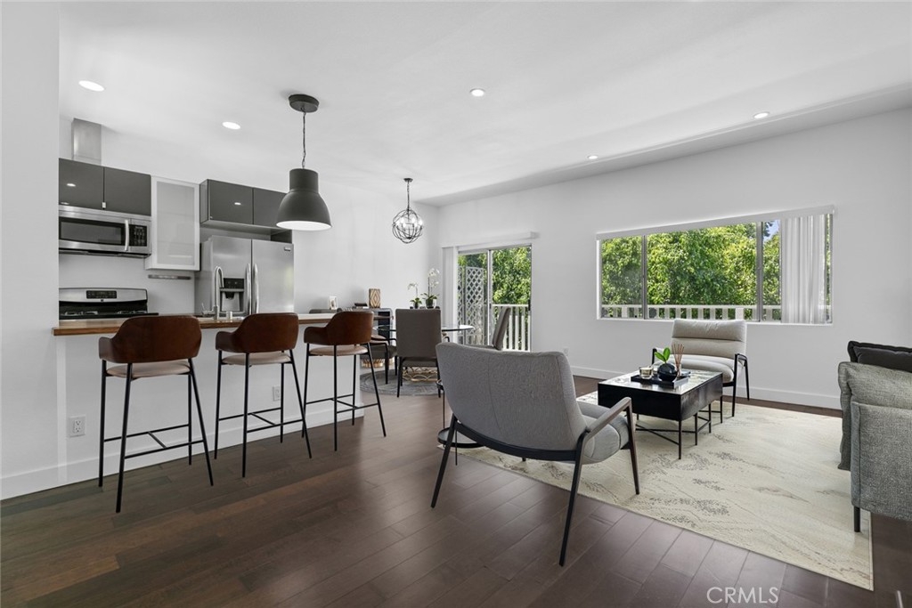 ****AMAZING OPPORTUNITY ****in the heart of Sherman Oaks! This 2 bedroom & 2 bathroom condo boasts an open concept living room with engineered hardwood floors from the livingroom to the bedrooms and 4k recessed lighting throughout. Plenty of natural light within the unit. The updated kitchen features butcher block countertops/bar, modern cabinets and stainless steel sink and appliances (refrigerator,stove,dishwasher). Stackable washer and dryer tucked discreetly inside a hallway closet for added convenience. Master bedroom has a large closet & full updated bathroom. Second bedroom has ample space and full size updated bathroom across the hallway. The unit is located at the rear of the building and is super quiet and peaceful. Central A/C and heater operated by NEST. Two subterranean parking spaces. Community amenities include, fitness center, additional laundry room, billiard table and recreation room. Minutes from the shops,restaraunts & bars on Ventura Blvd. 2 minute walk to Whole Foods & Hugo's Tacos, a neighborhood favorite.