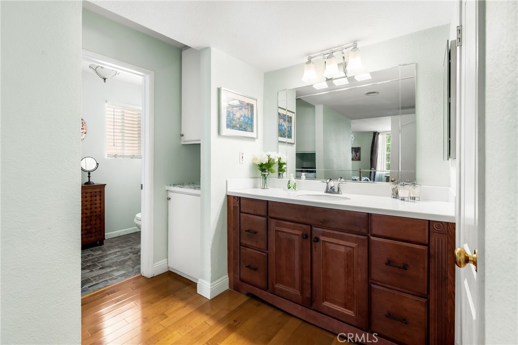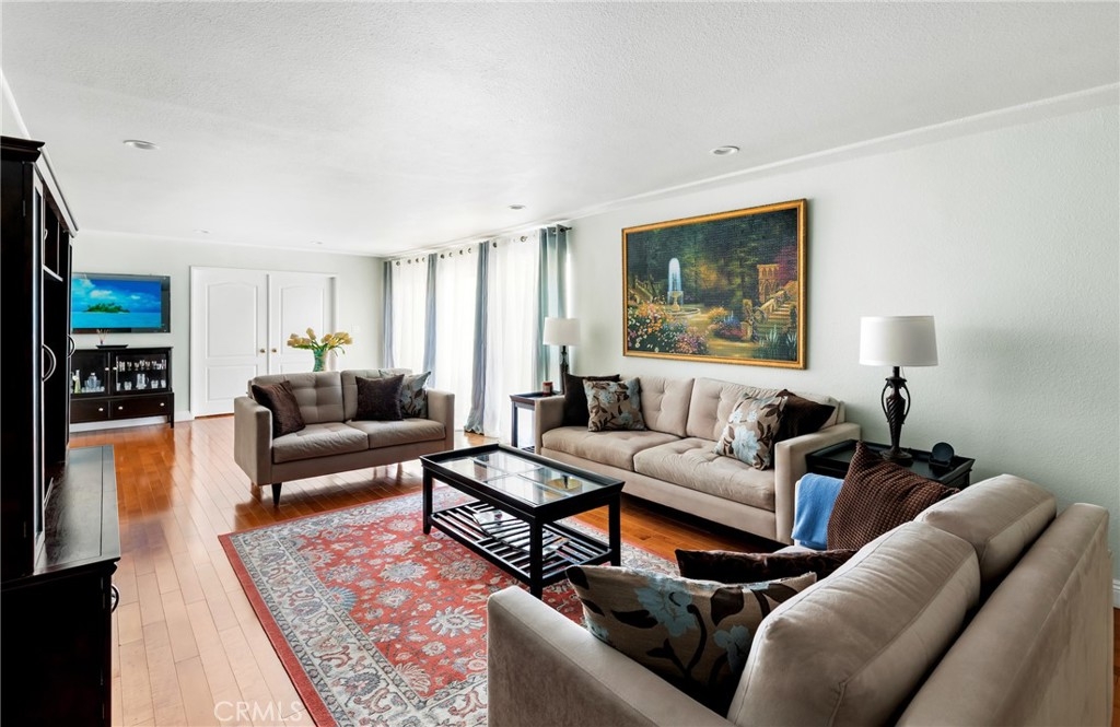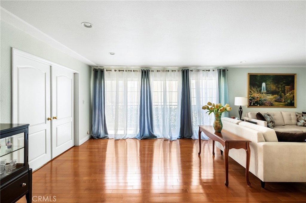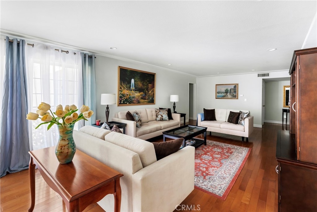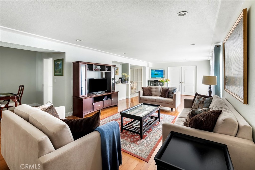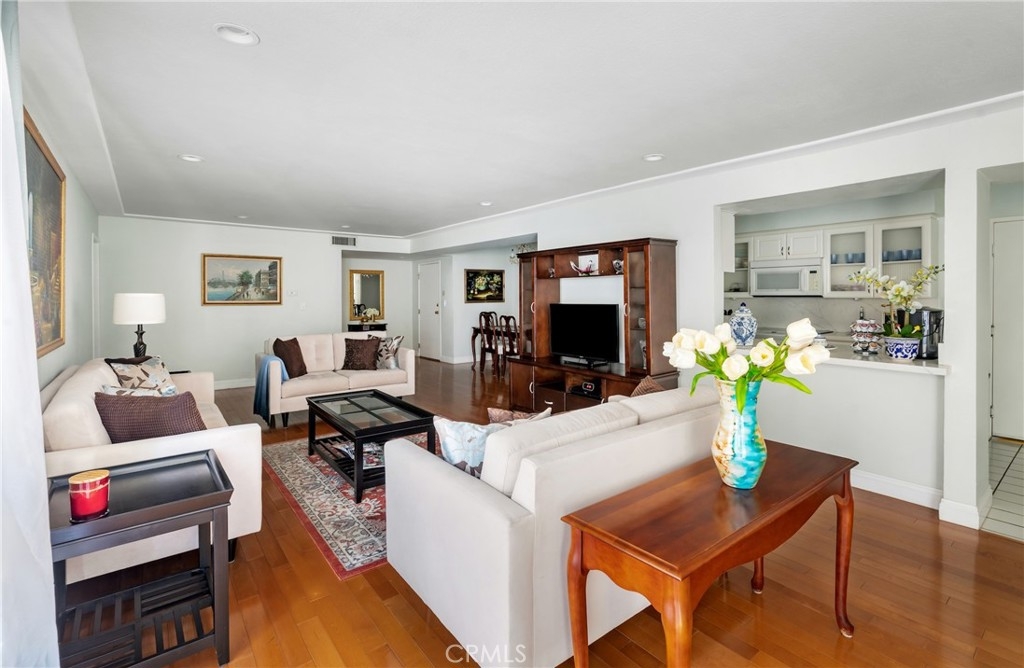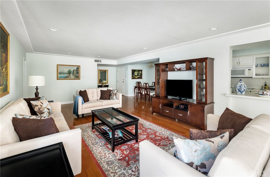 If you are looking for a place to stretch out and relax, you’ve come to the right place. Step into this bright, open residence where an expanse of gleaming mid-tone wood floors provide an elegant foundation to any décor. Gathering with family and friends is easy with the extra-large living room, open dining area, and kitchen breakfast bar. The south facing oversized windows and sliding door in the living room provide beautiful natural light. The kitchen offers room for casual dining, a pantry and gorgeous Himalaya quartz counter tops and full backsplash. The fresh look is completed by white kitchen cabinets and sleek undermount sink. Two bedrooms are off the interior hall and a third bedroom is located off the living room making it perfect for a guest room or home office. The primary bedroom has an en-suite bath and the second bath is located in the hallway. The unit has washer and dryer hook-ups for stackable set and two parking spaces. AGENTS: PLEASE READ PRIVATE REMARKS AND SHOWING INSTRUCTIONS FOR ADDITIONAL INFO