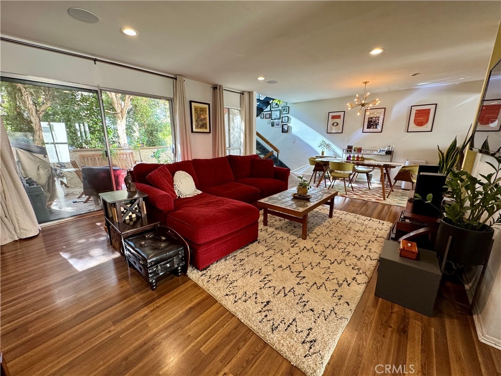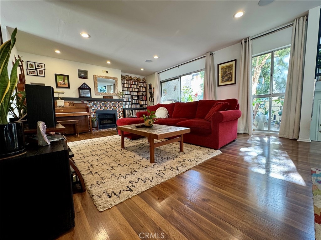 Rare Gem! Beaming with an abundance of natural sunlight, this 3 bedroom 3 bathroom modern Sherman Oaks Townhome has been tastefully remodeled. Open floorplan and architectural design boasts 1,620 sq. ft. in the heart of LA! Enjoy the gourmet kitchen, featuring granite countertops, sun-drenched oversized window and stainless-steel appliances, truly a cooks delight! The expansive living space boasts custom laminate wood flooring, recessed bluetooth-compatible lighting, and a cozy gas fireplace with built-in shelving, tons of storage and closet spaces! Perfect for both relaxation and entertainment, the surround sound speakers, custom paint colors, modern lighting and fixtures add ambiance to the indoor/outdoor living. The large primary suite feels like a private retreat with cathedral high ceilings, an oversized primary bath with jacuzzi tub, dual sinks and a huge walk-in closet and cozy balcony. You will absolutely love the oversized 2 car garage with private entry. There is also a large, tiled patio, framed by trees and perfect for grilling and entertaining. This is a full-amenity complex including insurance, a beautiful pool, hot tub, clubhouse with saunas, and greenbelt. The home is conveniently located near houses of worship, Kosher shopping, LA Fitness, Ralphs, Trader Joe's, Whole Foods, popular Erewhon shopping center, Fashion Square Mall, and the 101 and 170 freeways. Don’t miss the chance to own this incredible Sherman Oaks gem!