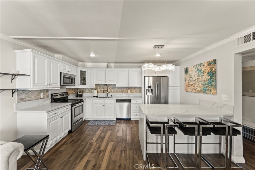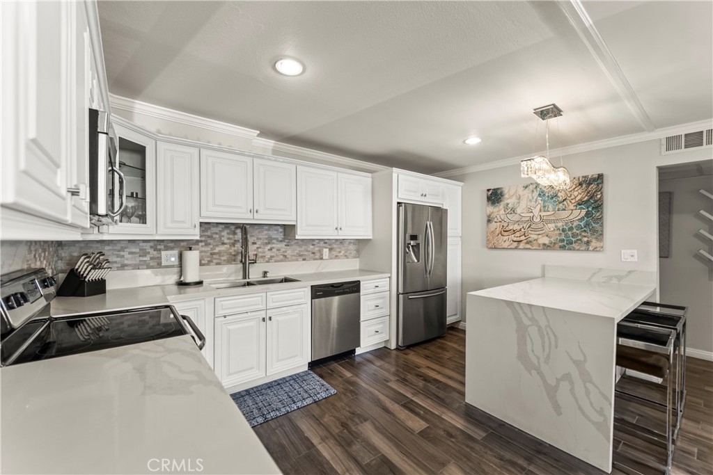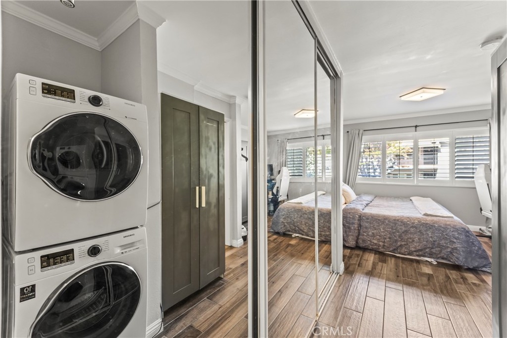 Welcome to this beautifully remodeled one-bedroom, one-bath condo in the heart of Sherman Oaks. Thoughtfully designed and move-in ready, this home offers comfort, convenience, and modern style. The light-filled interior features fresh paint, a modern kitchen with updated appliances, and an in-unit washer and dryer for effortless living. A private balcony provides a peaceful space to unwind, while the included TV adds a touch of ease and entertainment. Residents will appreciate the quiet, residential neighborhood, one dedicated garage parking space, and ample street parking for guests. Community amenities include a sparkling pool and beautifully maintained grounds, creating a serene setting just minutes from Ventura Boulevard’s popular shops, restaurants, and cafés.