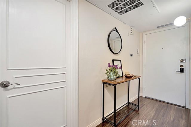 "Alexa, take me to the smartest two bedroom dual-master condo in town!" This technology forward main level end unit smart home in a pet friendly community the heart of Sherman Oaks features numerous upgrades throughout. The surprisingly spacious floor plan boasts dual-master bedrooms, an open concept living area, and completely renovated kitchen with shaker style cabinets, quartz counters, and stainless appliances. Darker tone laminate flooring provides warmth and consistency throughout the interior. Both bathrooms have been meticulously remodeled with updated vanities, quartz countertops, new hardware, and sleek floating shelves. This condo has all the tech you'll need offering a Nest thermostat, Ring doorbell, 3 camera Blink security system that are all synced to a brand new Echo Show monitoring system. Additional upgrades include a bluetooth speaker shower head, a 65" HD Smart TV with mounted sound bar and subwoofer, water efficient toilets, and water resistant wood deck tile. Building amenities include a heated swimming pool, barbecue area, underground gated access parking garage with direct access elevator. This home is ideally located near Sherman Oaks Galleria, The Getty Center, Universal Studios and feeds into excellent schools.
