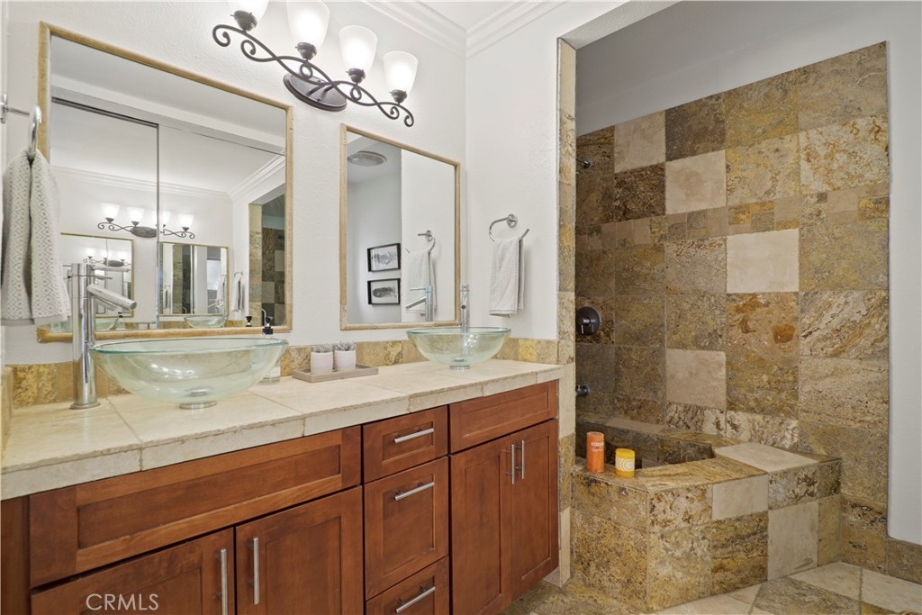 Incredible opportunity to own a beautiful TOP floor 2 bedroom and 2 bathroom condo in a highly desirable neighborhood of Sherman Oaks. With incredible VIEWS overlooking the valley with city lights and mountains. Desirable floor plan with large living room centered by the custom fireplace and sliding glass doors to the expansive baloney. Kitchen has lots of cabinets with stainless steel appliances open to the dining room and wet bar. Large Master suite has a remodeled ensuite bathroom, plantation shutters, and ample closet space. Secondary bedroom is on the other side of the condo with beautiful views and en-suite bathroom and walk-in shower. Additional features include in-unit laundry and freshly painted throughout. The gated complex offers BBQ area, sparkling pool, secured access and subterranean parking with 2 parking spaces. Within walking distance or quick bike ride to Ventura Blvd for convenient shopping, dining,and easy access to the freeways. Hurry before it's sold!
