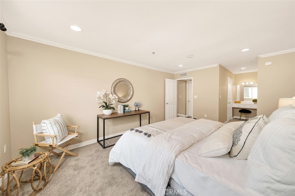 Beautiful and spacious condo nestled into a tree-lined street just minutes from the best shops and restaurants Sherman Oaks has to offer. The open living area is awash in natural light and the new carpet throughout feels plush and welcoming. An open kitchen with glistening countertops and white appliances underscores airy spaciousness. Recessed lighting throughout highlights the modern aesthetic. The bedrooms are comfortably roomy, and the primary boasts a vanity area. Both bathrooms have been updated and there is in-unit washer and dryer. If the private balcony feels like a treat, just wait until you see the pool, sauna, recreation room and BBQ area. This location truly covers all your needs, with two side by side parking spaces in a gated garage. The luxurious resort-style living this gem offers means it won’t last for long!