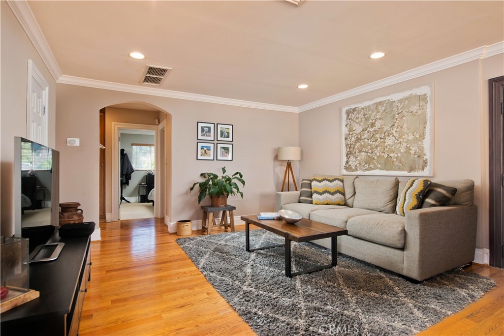 Gorgeous spacious condo South of Ventura in prime Sherman Oaks! Located walking distance to shops, restaurants, and to everything you may possibly need. This light and bright open floorpan 2 bedroom, 2 bath corner unit features gleaming hardwood floors, granite countertops in the kitchen and bathrooms, a large primary bedroom with walk in closet and attached bath, large second bedroom, large dining room that will fit an oversized table, sitting area, tons of windows allowing a cross breeze, and has a private single car garage. The building is quiet and charming with only 20 units, features a sparkling pool, electric gated entry, an immaculate laundry room, and is well managed and maintained by the HOA and unit owners. This condo is gorgeous and move in ready!