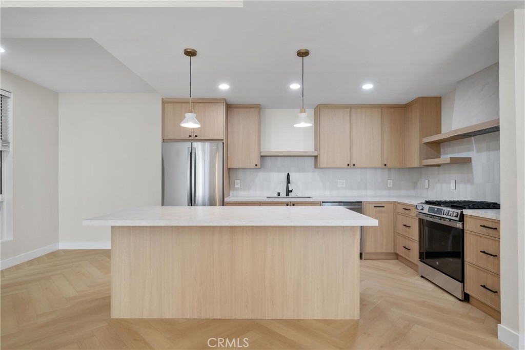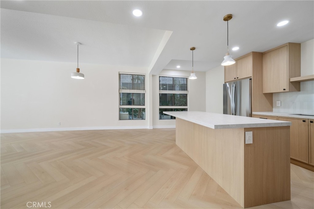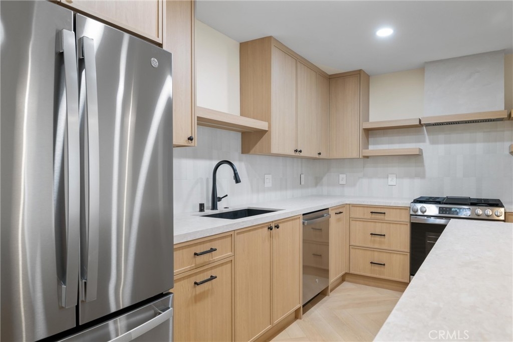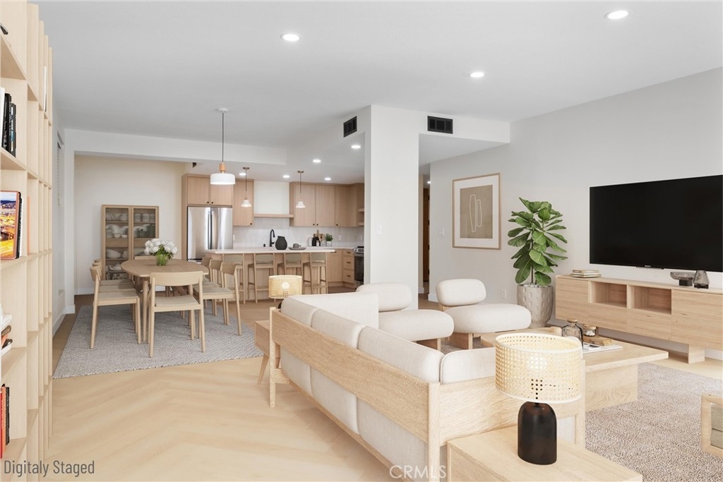 PRICE IMPROVEMENT! Welcome to this beautifully remodeled, move-in ready 2-bedroom, 2-bathroom condo spanning over 1701 sq ft of space in the heart of Sherman Oaks. As you step inside the home, you will be immediately drawn to the stunning Herringbone flooring that flows seamlessly throughout the living area, complementing the open concept layout filled with natural light. Every detail of this home has been thoughtfully designed with high-end materials, organic Wabi-Sabi neutral palette and custom fixtures throughout. The custom kitchen is a true highlight, featuring premium finishes with luxurious lathered Canadian quartz countertops, white oak cabinetry, exquisite Spanish backsplash tile, stainless steel appliances, all complemented by ample cabinet space. The fireplace and kitchen hood have been uniquely crafted with Limewash finishes, enhancing the tranquil atmosphere. The spa-like primary bathroom features a custom design with a free-standing tub, a stunning glass-enclosed shower, featuring an imported tile and custom double vanity. Both generously sized bedrooms are filled with light, offering high ceilings, walk in closet and access to the balcony. Located in a prime spot with easy access to major freeways, Ventura Blvd, and Sherman Oaks’ top shopping, dining, and entertainment, this condo is ideal for those seeking convenience and the vibrant energy of city living. Don’t miss out on this exceptional home!