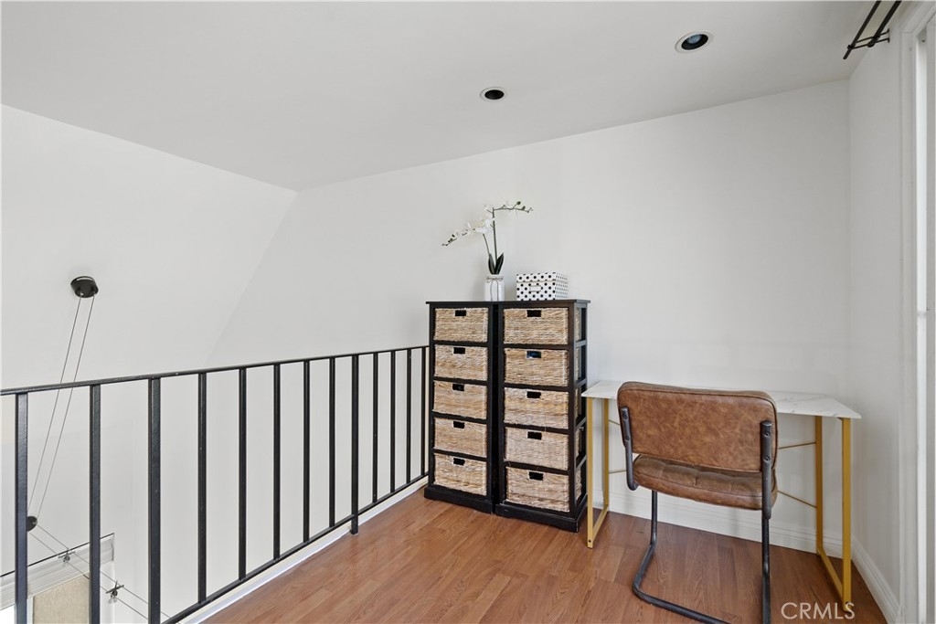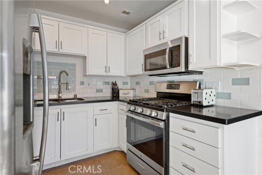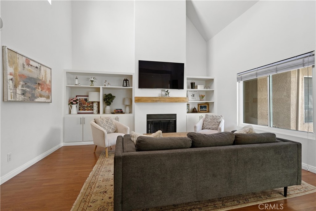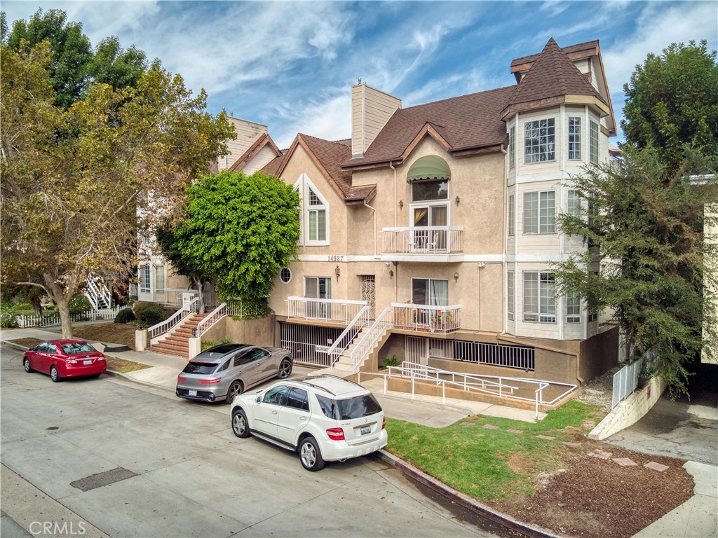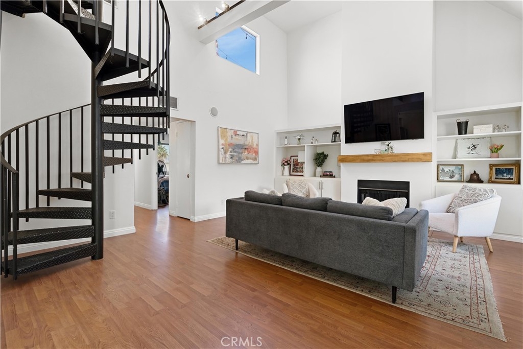 Welcome to Sherman Oaks! This beautiful 2 bedroom 2 bath condominium is light, bright, fully updated. This unit comes with a large private rooftop deck and additional loft. Located just south of Ventura Boulevard, this home features an open floor plan with two story vaulted ceilings, luminous skylights, hardwood floors and modern design. The kitchen is updated with quartz countertops, travertine tile and stainless steel appliances and opens into the dining area and living room with custom built-ins, fireplace and spiral staircase leading up to the loft space and rooftop deck with spectacular views. The master en suite boasts an updated bathroom, walk-in closet and private balcony. With side-by-side parking, private storage, and ample guest parking, additional amenities include a pool, spa, gym, laundry room, bicycle storage and gardens.