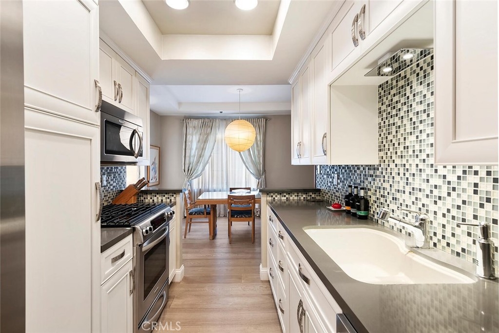 Introducing 14960 Dickens…updated, clean and crisp. Saunter through the beautifully manicured courtyard to enter this fabulous two bedroom/two bathroom unit located South of the Boulevard in Sherman Oaks. Graced with new hardwood flooring, sleek, updated kitchen and bathrooms, two large walk-in closets, two balconies, pretty window treatments and a tasteful muted palette, this warm and cozy home will delight all. Such a treat to have an in-unit laundry room and two tandem parking spots with ample guest parking. Appealing, bright gym on first level, relaxing pool, updated pool/rec room and close to fun, delicious restaurants and shops. This one is the whole package.