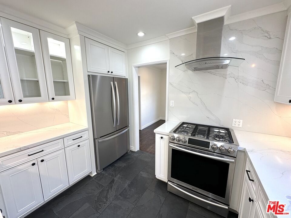 Newly remodeled townhouse located in an incredible Sherman Oaks location, South of the Blvd. This modern condo has 2 bedrooms, 2 baths, a bright open floor plan, gourmet updated kitchen, massive living room, separate dining room, washer/dryer in unit, hardwood flooring and recess lighting throughout. A corner unit with the feeling of a home. There are tons of windows and natural light in every room creating a very bright space. The large primary bedroom includes a walk-in closet and separate open closet space. There's a community pool, private 1-car detached garage and front entry patio/courtyard with beautiful landscaping. Property is perfectly located on a quiet residential street and walking distance to the best of Sherman Oaks including Whole Foods, movie theaters, restaurants and shops.