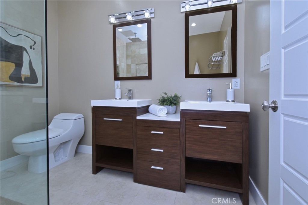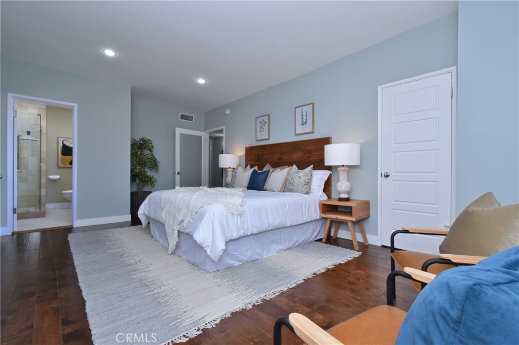 Welcome to this beautiful move-in ready townhome with 2 Bedrooms + 2.5 Baths + BONUS room with no one above or below you! Thoughtfully UPGRADED with modern designer touches throughout, You will delight in this sharp and sophisticated Tri-Level floor plan. The comfortable easy flow of the MAIN level is a natural for entertaining and consists of a spacious Living Room with Bricked Wall, Fireplace, Dining Area, Built in Bar, Half Bath, and a beautifully REMODELED KITCHEN. A tasteful blend of design and utility, the KITCHEN features gorgeous cabinetry with oversized farm style sink, Quartz counters, and stainless-steel appliances. HIGHLIGHTS of this special Unit include the gleaming wood floors, flawless lighting design, large windows with plantation shutters, NEST Learning Thermostat, and more... Two large Bedrooms with ensuite Baths await you upstairs. The large Primary Suite includes a sitting area, three closets and a luxurious bath. The pleasingly flexible BONUS ROOM on the LOWER level makes for a perfect office, den or media room with its own private patio and the added convenience of DIRECT ACCESS to your 2 side by side parking spaces + storage cabinets. "Dickens Terrace South" is a lovely complex totaling only 18 Units and featuring a pleasant central Courtyard. A Community Pool and Patio Area are also yours to enjoy! All centrally located to all that Ventura Boulevard has to offer with its shops, restaurants, and everything else this popular pedestrian friendly neighborhood has on offer.