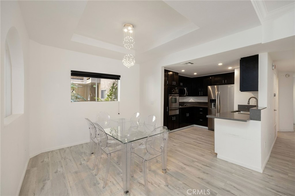 Located in a prime area of Sherman Oaks, right on the border of Studio City, this stunning condo offers unparalleled convenience and style. Just steps from a variety of shops, restaurants, and the newly renovated, iconic Sportsmen’s Lodge, you’ll relish the vibrant urban lifestyle at your doorstep. Perfect for modern living and entertaining, this spacious corner unit boasts an open floor plan, energy-efficient Nest thermostat, in-unit washer/dryer, and 2 private balconies. The complex features a swimming pool, recreation room, and two tandem parking spaces with storage in a gated garage. HOA dues cover water, trash, landscaping, pool service, building maintenance, a master insurance policy, guest parking, and 24-hour monitored surveillance with cameras in common areas. Seize the opportunity to become part of this dynamic community and make this exceptional property your new home!