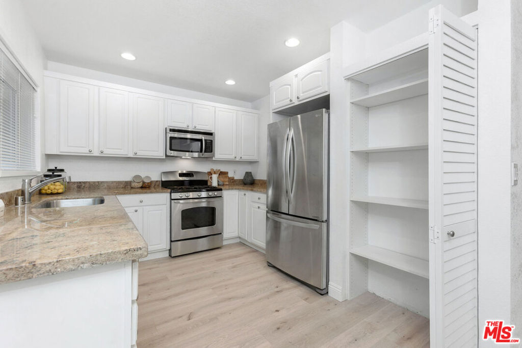 Beautifully upgraded single level 3-bedroom/ 2-bath condo in a phenomenal location -- just one block away from award-winning Dixie Canyon Elementary, and seconds from world-class shopping, dining, and entertainment on Ventura Blvd! Value-packed with approximately $80,000 of renovations, the open and intuitive living space features a gourmet kitchen with granite counters, stainless steel appliances, ample storage space, and a casual dining nook. Enjoy larger or more formal gatherings in the dining room, or relax in the spacious living room with marble adorned fireplace and outside on the roomy balcony. The oversized primary suite includes an extra nook for workspace or leisure activities, as well as a walk-in closet and sumptuous bath with relaxing soaking tub. Other features include double paned windows, recessed lights, in-unit laundry, and two versatile guest bedrooms! HOA dues include earthquake insurance, water, trash service, and amenities such as a sparkling pool and sun deck, security camera system, and gated parking. Space, style, value, and a premier location at an affordable price!