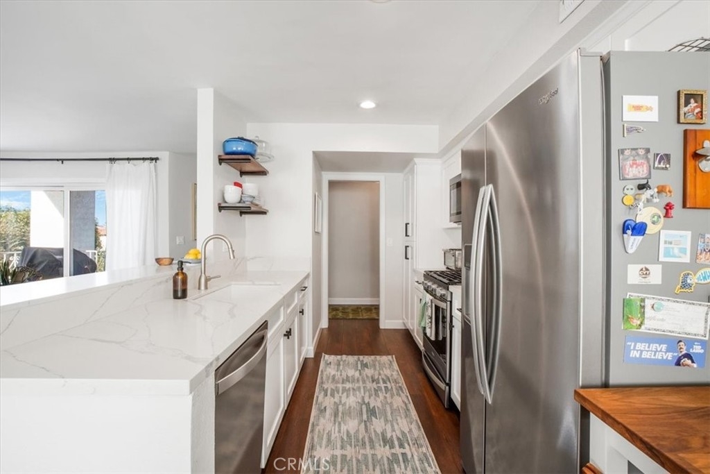 Welcome home to a beautiful and sophisticated 2 bedroom, 2 bathroom spacious condominium in a Prime Sherman Oaks location. This generous space offers an elegant and spacious front entrance leading to an open concept kitchen with newer cabinets, quartz countertops, laminate flooring, dining area, large living room with windows facing north and south filling up the room with plenty of natural light. The wet bar was also remodeled, matching the same sophistication as displayed in the kitchen. The balcony on this top floor has a great panoramic view of the area with mostly mature trees on both sides of the street, giving a sense of peace with nature and fresh air. Property owners get to enjoy the convenience of having multiple closet spaces and built-in storage in hallways and bedrooms. Bathrooms have been meticulously designed to impress. This top-end unit on a cul-de-sac is extremely quiet, with over 1,200 SF and large, comfortable bedrooms. Recently updated pool, secure underground parking, bicycle storage, private storage, laundry room on the same floor, and one of the best locations in the area to walk to shops and restaurants on Ventura Blvd, Sherman Oaks Village or to hike a few minutes away on Fryman Canyon and Franklin Canyon reservoir trails. You must visit this fantastic area to fully appreciate it.
