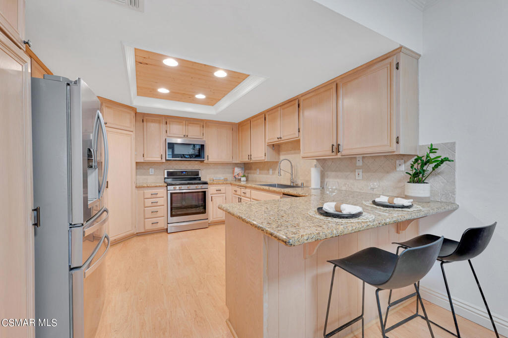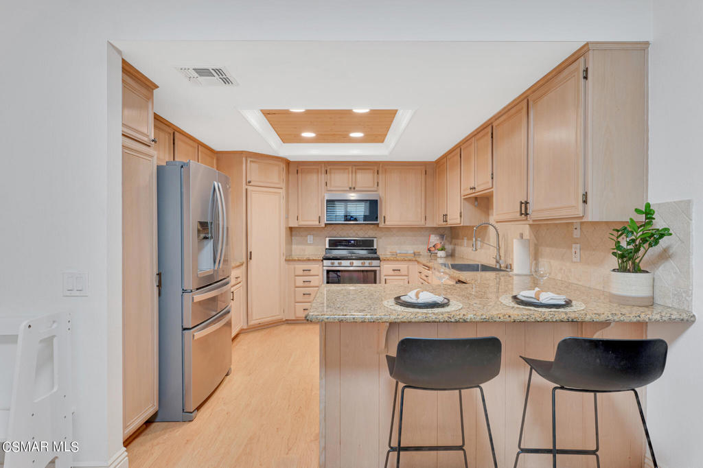 This spacious and stylish condo complex in the highly coveted neighborhood of Sherman Oaks is the perfect place to call home. This 3-Bedroom 2-Bathroom exudes charm with a touch of Joanna Gaines' signature style. Guests are welcomed into the space with sweeping wood-like flooring throughout, tall ceilings, neutral color scheme, beautiful textures and large windows and sliders allowing it to show light and bright!! The beautiful gourmet kitchen provides the perfect blend of beauty & function. Gleaming granite countertops catch your eye while the breakfast bar and pantry offer convenience! Featuring open concept living with almost 1,600 square feet. This home is effortlessly perfect for entertaining your friends and family or for unwinding after a long day. Master retreat is spacious and grand while still offering a warm and cozy atmosphere. It also boasts a spacious walk-in closet and spa-style bathroom with large vanity and dual sinks. Additional features include convenient indoor laundry room, large secondary bedrooms, ample storage throughout, beautiful dining room, lovely secondary bathroom with tub and so much more! Located in a highly desirable area, this building boasts numerous amenities, including a refreshing pool and spa, a well-equipped gym, and convenient elevator access. Parking is always a breeze with the two subterranean side-by-side parking spots in the gated garage in addition to the convenient and plentiful guest parking lot...wow! Just moments away from quiet strolls in the residential neighborhood behind and a short distance to Westfields Fashion Square, Trader Joes, and the beautiful Sherman Oaks Park...wow, this home has it all!