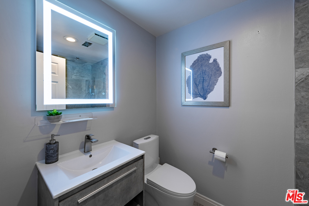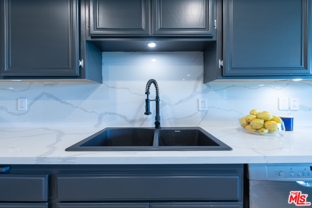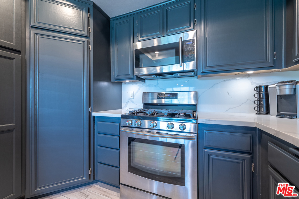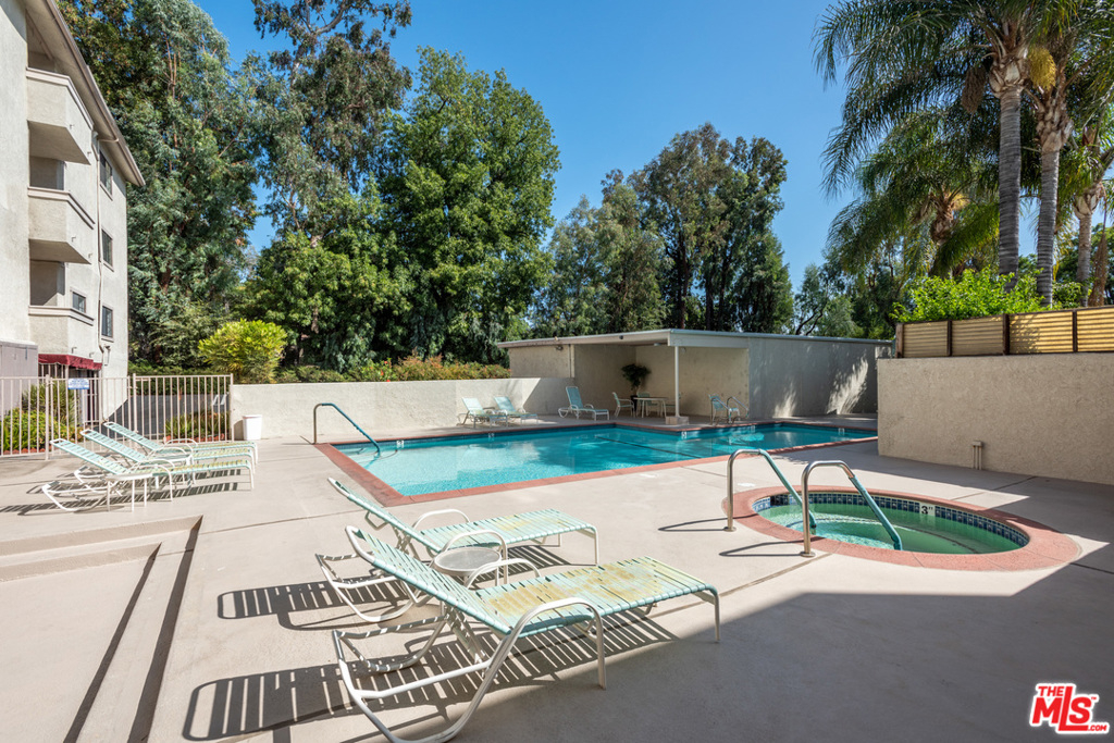 This exquisite and intelligently redesigned two bedroom, two bathroom condominium is dressed in rich blue and gray tones, and updated with quality materials that exude sophistication without sacrificing comfort. The open living area features beautiful new flooring that flows up the main wall, creating a perfect sightline to the gorgeous kitchen with waterfall style quartz counters and an elegant dining bar that seats at least six. Discover rainfall showers, floating vanities, and stylish tile in the spa-like bathrooms. Enjoy luxurious new carpet in the bedrooms, LED and remote lighting in living areas, and your own in-unit laundry room. Amenities include a well-appointed gym and a sparkling pool! This gated, pet-friendly complex has plenty of guest parking and this unit includes two assigned parking spots in the gated garage. Amazing location! Conveniently located near the Van Nuys/Sherman Oaks Park, Westfield Mall, markets, and the 101 freeway.