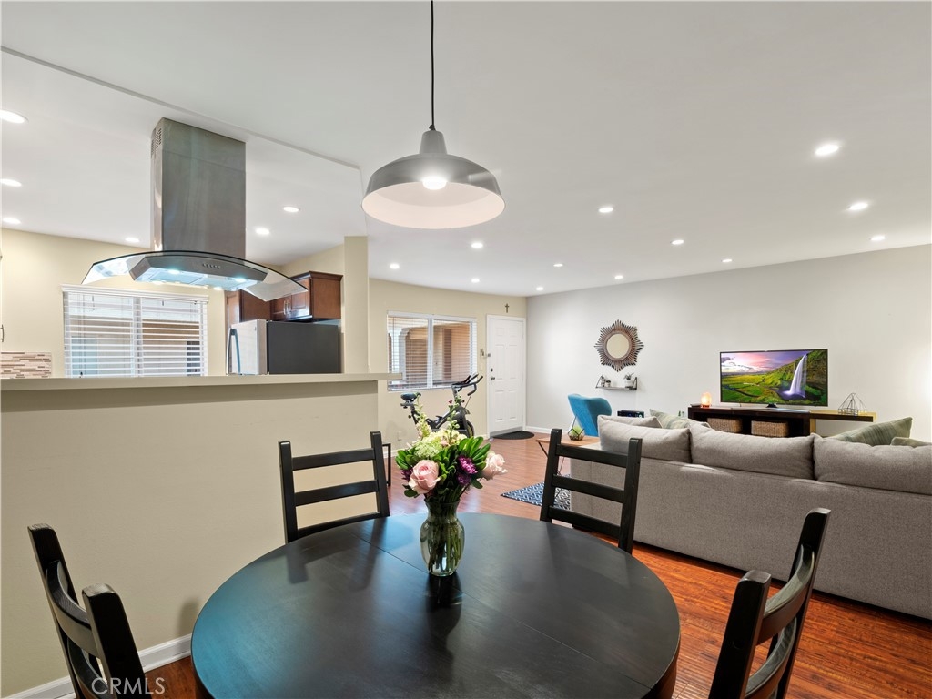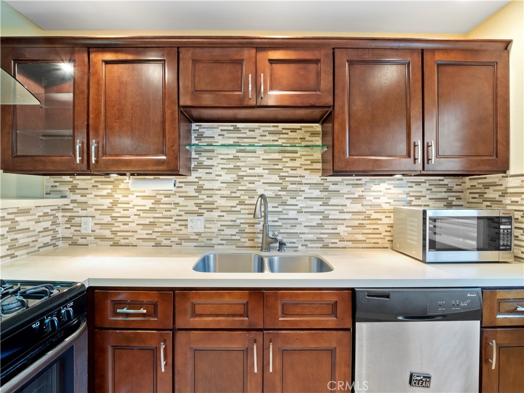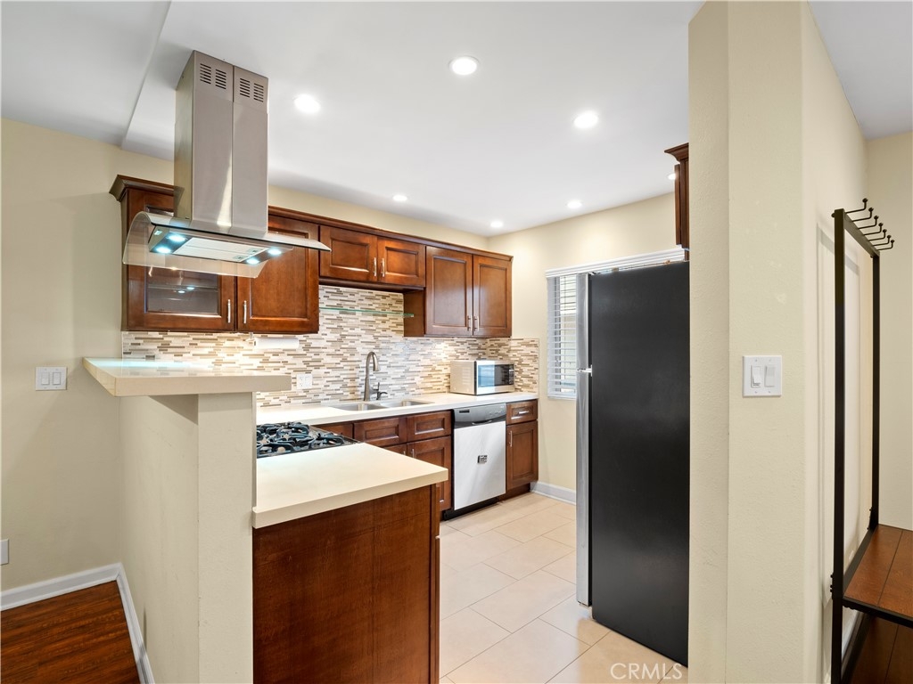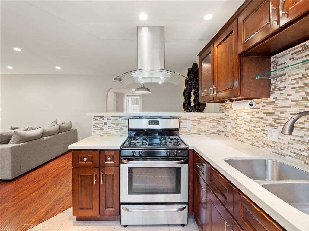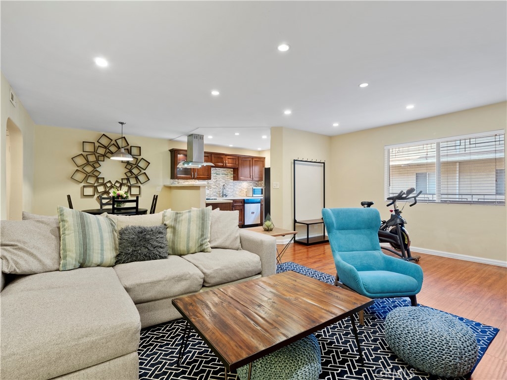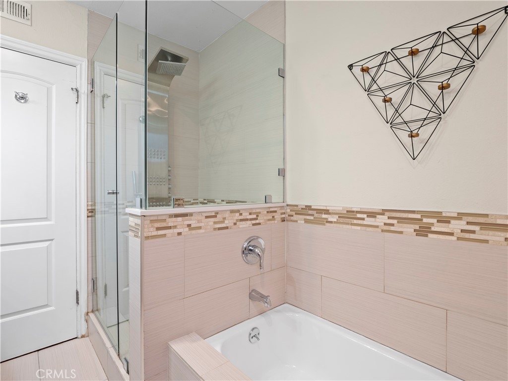 Come and take a look at this immaculate 1 bed/1 bath condo just "South of The Boulevard" in the heart of Sherman Oaks! It is adorned with beautiful, modern design touches, recessed lighting, and an open concept living space open to dining area, kitchen, and living room. Wood-like flooring and tile installed throughout the home make it easy to clean and maintain. Your beautiful upgraded kitchen has stainless steel appliances, custom mosaic tile backsplash, high quality cabinetry, and a beautiful range hood. Your renovated bathroom is second to none! Mosaic tile backsplash accents with dual vanity sinks and Alpha bidet toilet with heated seats and temperature controls. You might end up spending a little more time in the walk-in shower or maybe consider living in it with the exquisite full body shower system with rainfall shower head, body jets, and hand shower wand. Comfortable and spacious bedroom with wide closet directly across from your office space with built in desk should you need to work from home. You are allowed to install a washer/dryer in unit if you choose to. HOA covers water and amenities include a sauna, pool, roof sun deck, laundry room, gated access with video monitoring, elevator, cleaning, and professional management. Complex is protected by a security gate with intercom system. Not far from the freeway and all the must-try restaurants and shopping that Ventura Blvd offers. This move-in ready, turnkey home is ready for its next lucky owner to call it home. Hurry before its gone!