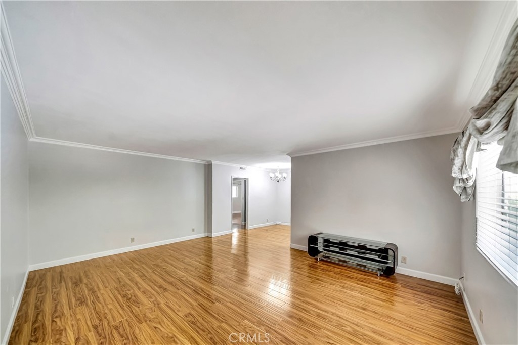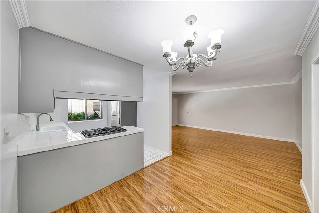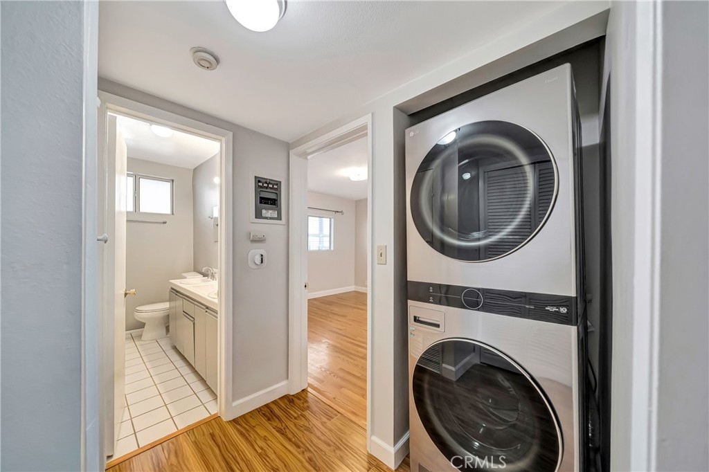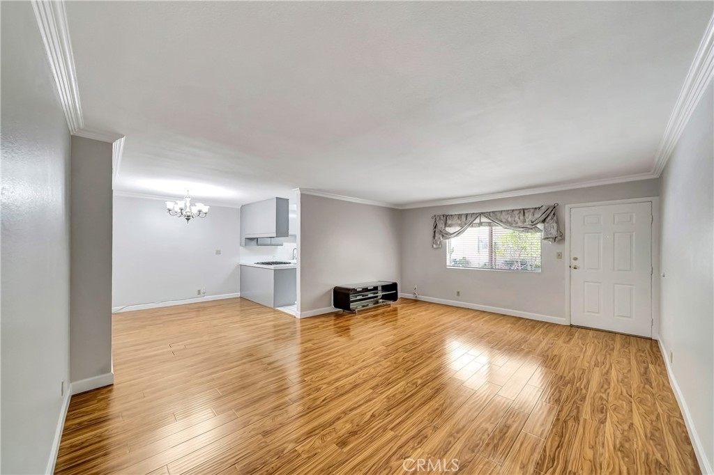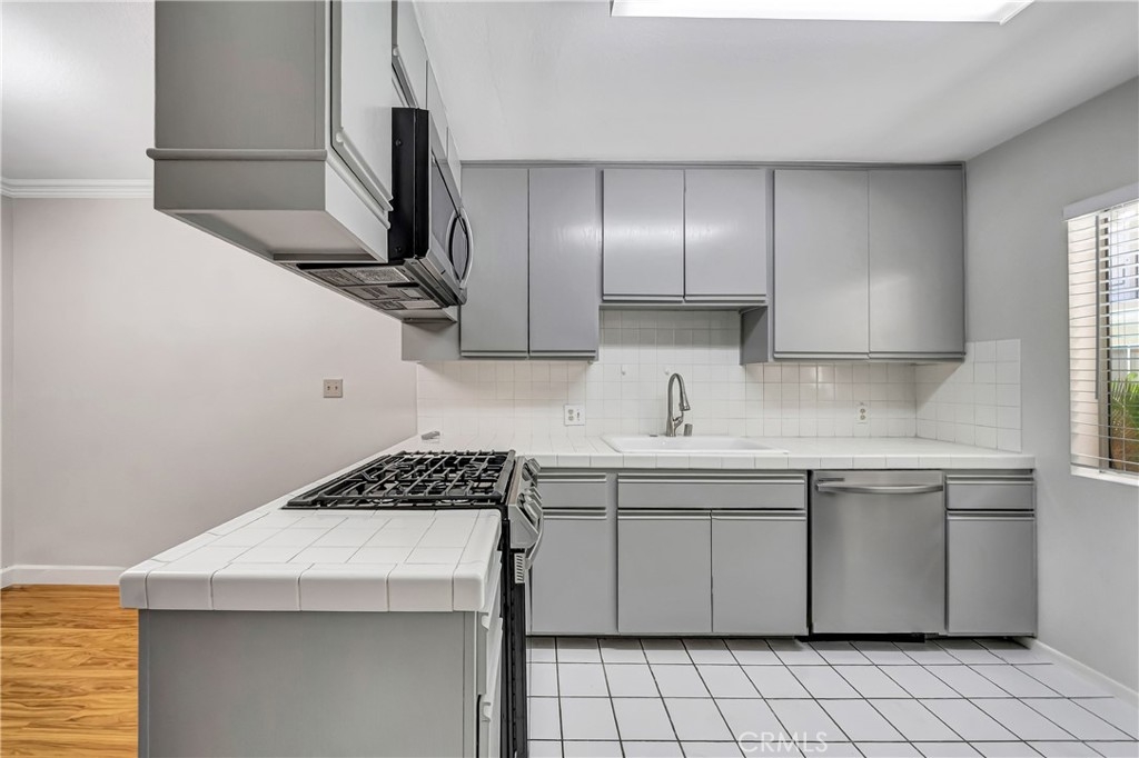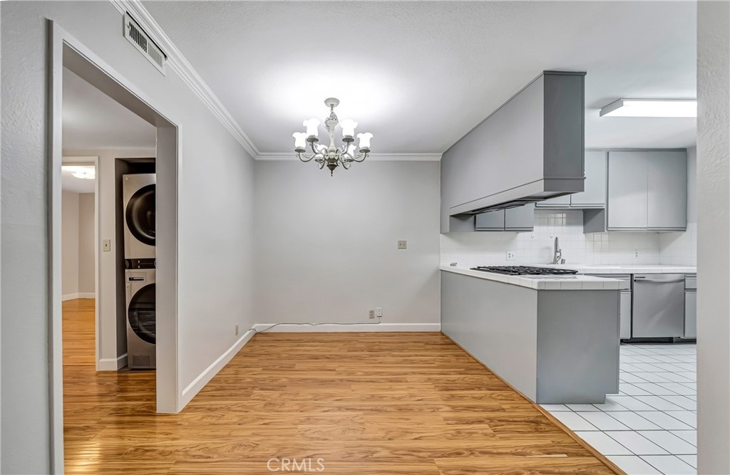 Light and bright, spacious condo in the heart of Sherman Oaks. Centrally located just one block from Ventura Blvd., this fantastic property offers many desired features for comfortable living. As you enter this first-floor unit, you will see large living room with lots of natural light pouring in. Neutral paint color will compliment any décor style, and beautiful laminate floors and crown moldings are a great added feature!! Dining area and kitchen are located right off the living area and provide a desirable open concept feel. Kitchen is a very good size with stainless steel appliances, lots of spacious cabinets, and plenty of counter space. Further down the hall, you will find a stackable washer and dryer combination for your convenience. The one bedroom is a very size, light and bright, with ample mirrored closets! The one bathroom offers double sinks, tub, and a separate tiled shower. The complex is quiet and secure and offers a refreshing pool, a roof top deck for relaxation and entertainment! Close proximity to the best restaurants, shops, schools, make this property a great choice! Very low HOA fee!!