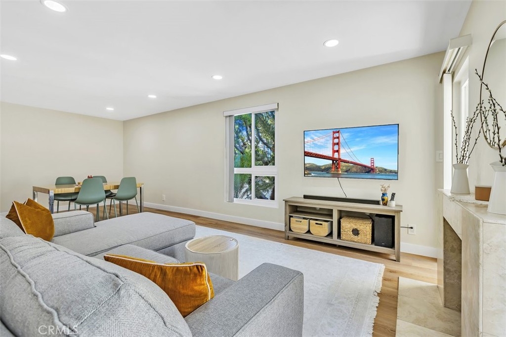 Welcome to this charming 2-bedroom, 2.5-bathroom townhouse in the heart of Sherman Oaks. This is an end unit on property and only shares one wall.This meticulously upgraded home offers the perfect blend of modern conveniences and cozy living spaces. Upgrades: Floating Vinyl Floors: Stylish and durable floating vinyl flooring throughout the living and dining rooms, including closets, gives this home a contemporary feel while being easy to maintain. Newly installed upgraded windows: All in unit windows recently replaced by vinyl, double paned, energy efficient windows with upgraded insulation and soundproofing packages. Renovated Bathrooms: Enjoy the comfort of newly renovated bathrooms on both levels, featuring modern fixtures and finishes. New Appliances: The kitchen boasts a brand-new microwave and range, making meal prep a breeze. New Baseboards & Door Frames: Freshly installed baseboards and door frames in the living and dining rooms enhance the overall aesthetic. Community Amenities: Heated Pool: Take a dip in the community’s heated pool, perfect for year-round enjoyment. Indoor Jacuzzi & Sauna: Unwind after a long day in the indoor jacuzzi and sauna, exclusive to residents. Open Grass Space: Enjoy the large, open grass area within the common space. Community BBQ Grills: Enjoy outdoor cooking with clean, easily accessible community gas BBQ grills. Community Rec Room: Perfect for medium to large parties, with a small bar, couches, and pingpong table. HOA Benefits: The HOA also covers water and trash, offering added convenience and peace of mind. Parking & Storage: Comes with 2 gated, underground parking spaces plus additional storage. Location Highlights: Prime Accessibility: Close proximity to the 405 and 101 freeways, Sherman Oaks Galleria, and Hazeltine Park makes commuting and entertainment effortless. Convenient Shopping: Within 1 mile of Ventura Strip with plenty of shopping and culturally diverse amazing restaurants, Trader Joe’s, Pavilions, and the local post office. Top-Rated School: Within walking distance to the highly rated Kester Elementary School, ensuring an excellent education for your children. Don’t miss out on this exceptional opportunity to own a town home that combines comfort, outdoor space, convenience, and community.
