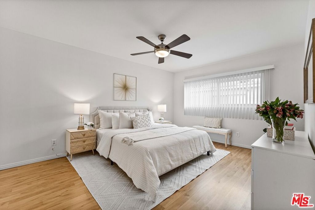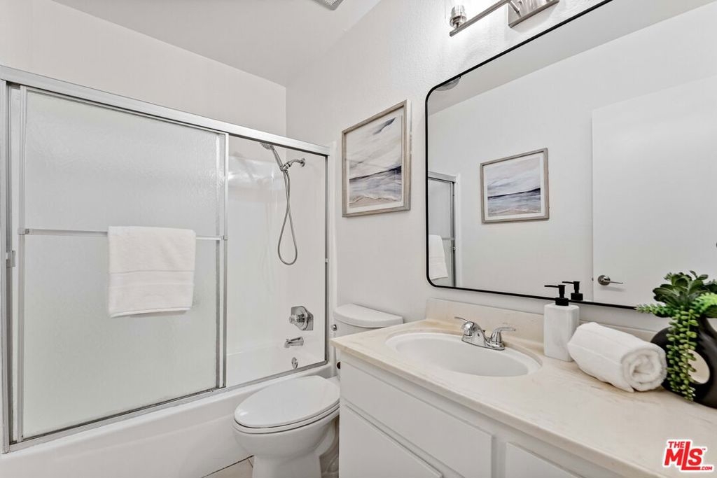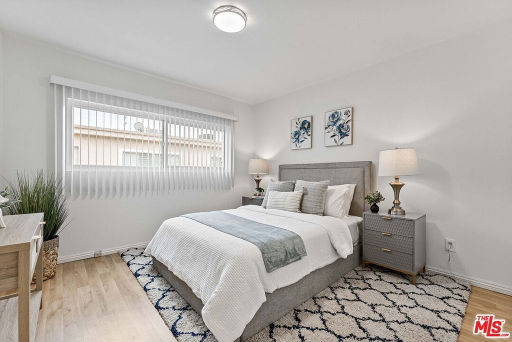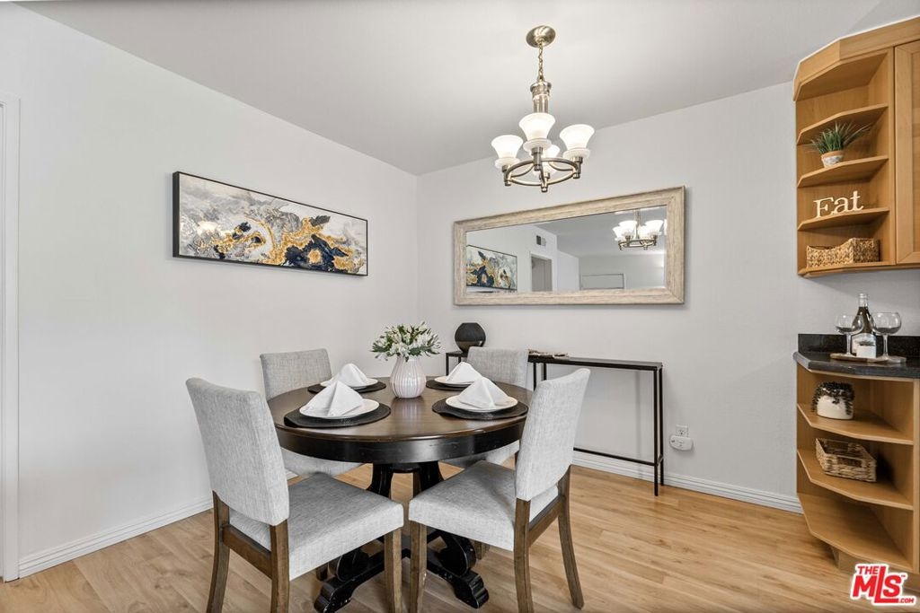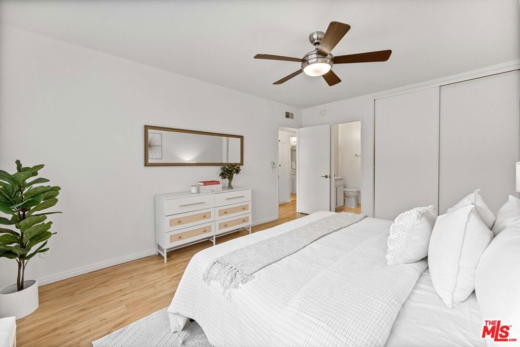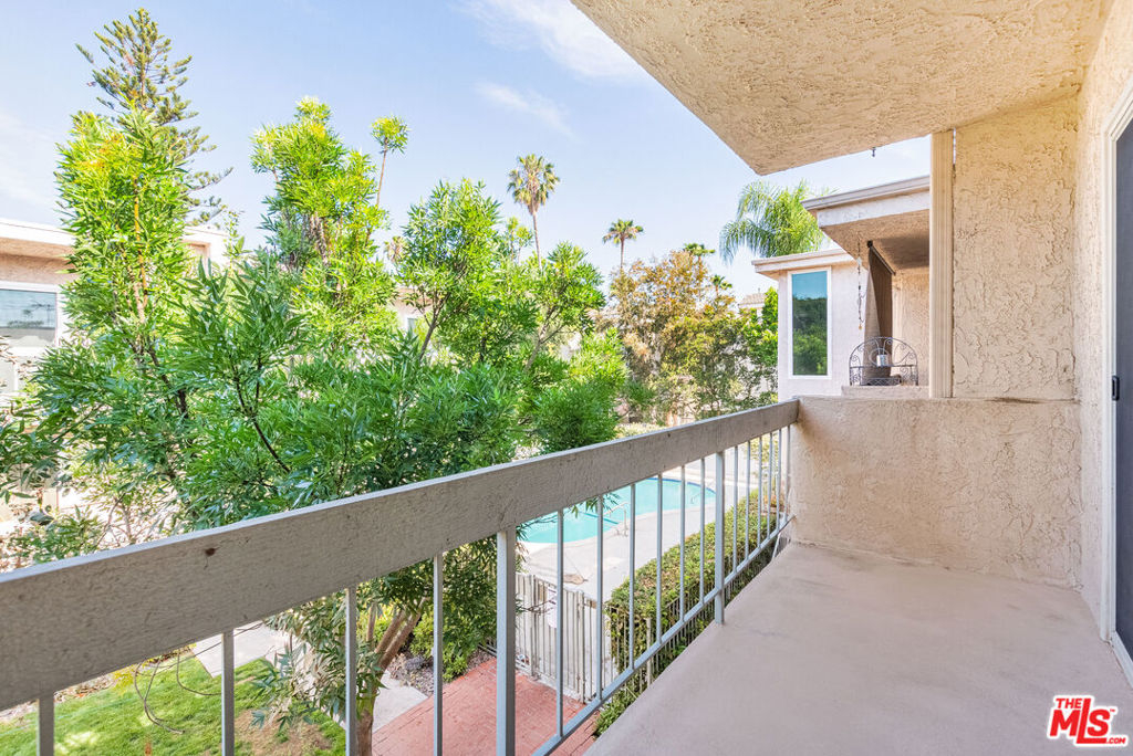 Quiet courtyard facing 2 bedroom 2 bath condo conveniently located in close proximity to 101freeway, Whole Foods, Erewhon, Equinox, restaurants and other entertainment on Ventura Blvd. This second floor condo is freshly painted and has tons of natural light and a pool view from the balcony. Contemporary kitchen is equipped with a gas stove, dishwasher, microwave, cabinets with exposed shelves and caesarstone quartz countertops. There is a separate dining area adjacent to kitchen and additional storage closets in the living room and in the hallway. Both bedrooms are generous size and come with large walk-in closets. Primary bedroom has a ceiling fan and an en-suite bathroom with a shower. The second bathroom in the hallway and has a shower over tub. Other features include laminate floors throughout, dual pane windows with noise cancelling E-glass, Nest thermostat for central a/c and heating. New homeowner can submit an architectural request to the HOA to install a washer/dryer in unit. The condo is located in a secured access building with intercom and cameras throughout the property. Assigned tandem parking for 2 cars and private storage closet in parking. HOA fees include water, trash and earthquake insurance. Community amenities include a sparkling pool, gym, onsite laundry room with app operated washers and dryers, and guest parking. Don't miss the opportunity to call this wonderful place your home!