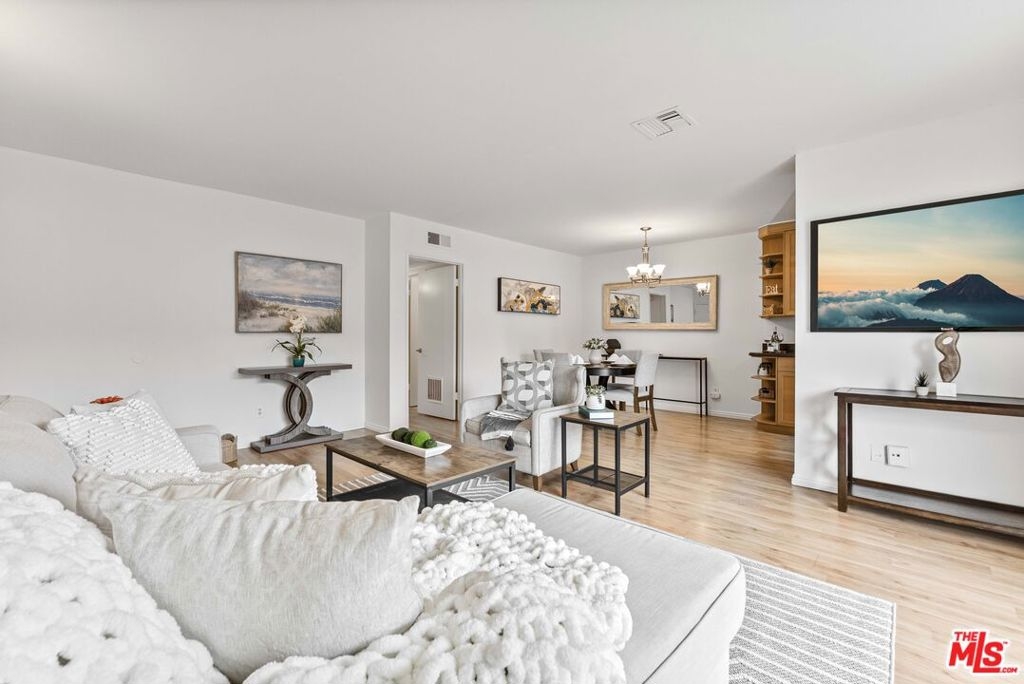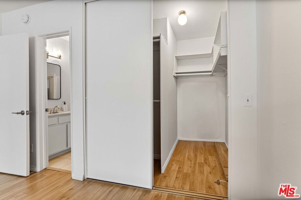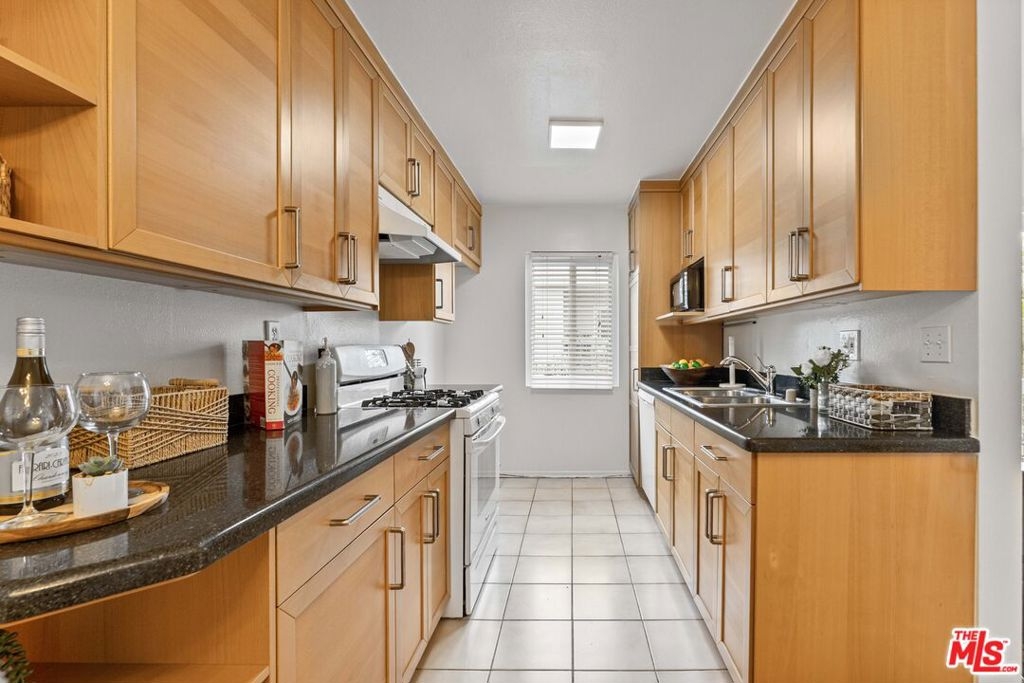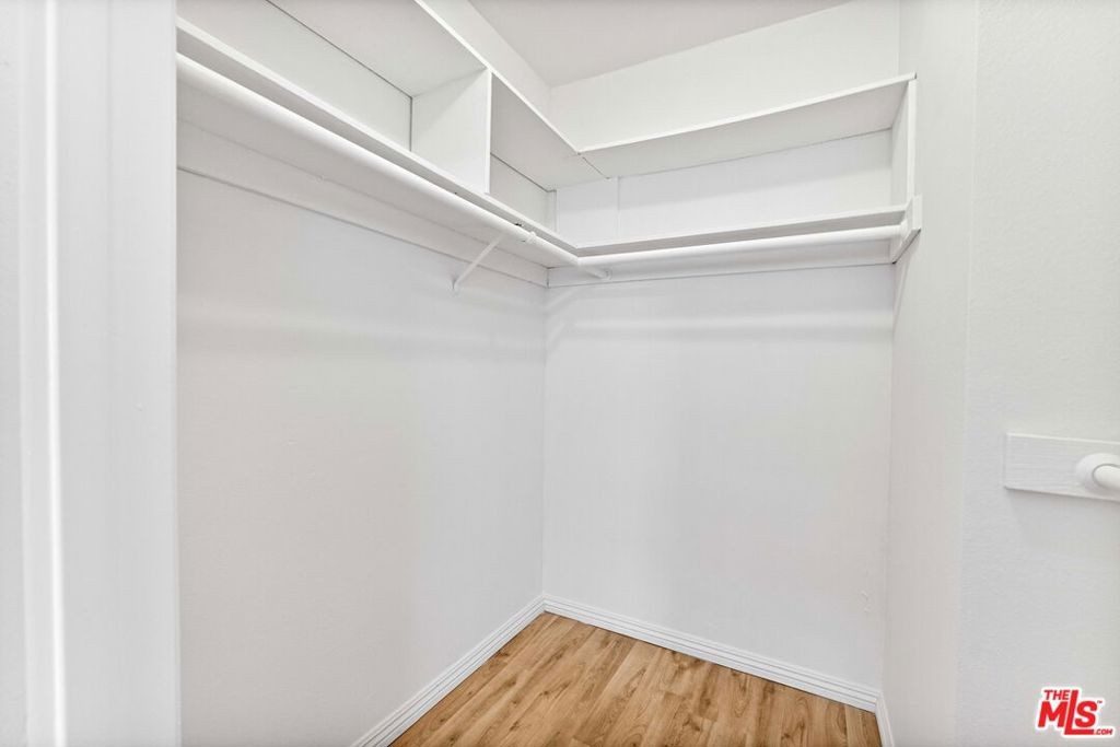 Quiet courtyard facing 2 bedroom 2 bath condo conveniently located in close proximity to 101freeway, Whole Foods, Erewhon, Equinox, restaurants and other entertainment on Ventura Blvd. This second floor condo is freshly painted and has tons of natural light and a pool view from the balcony. Contemporary kitchen is equipped with a gas stove, dishwasher, microwave, cabinets with exposed shelves and caesarstone quartz countertops. There is a separate dining area adjacent to kitchen and additional storage closets in the living room and in the hallway. Both bedrooms are generous size and come with large walk-in closets. Primary bedroom has a ceiling fan and an en-suite bathroom with a shower. The second bathroom in the hallway and has a shower over tub. Other features include laminate floors throughout, dual pane windows with noise cancelling E-glass, Nest thermostat for central a/c and heating. New homeowner can submit an architectural request to the HOA to install a washer/dryer in unit. The condo is located in a secured access building with intercom and cameras throughout the property. Assigned tandem parking for 2 cars and private storage closet in parking. HOA fees include water, trash and earthquake insurance. Community amenities include a sparkling pool, gym, onsite laundry room with app operated washers and dryers, and guest parking. Don't miss the opportunity to call this wonderful place your home!