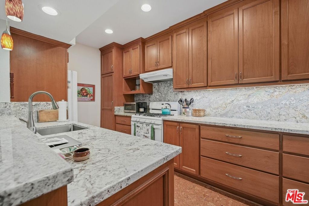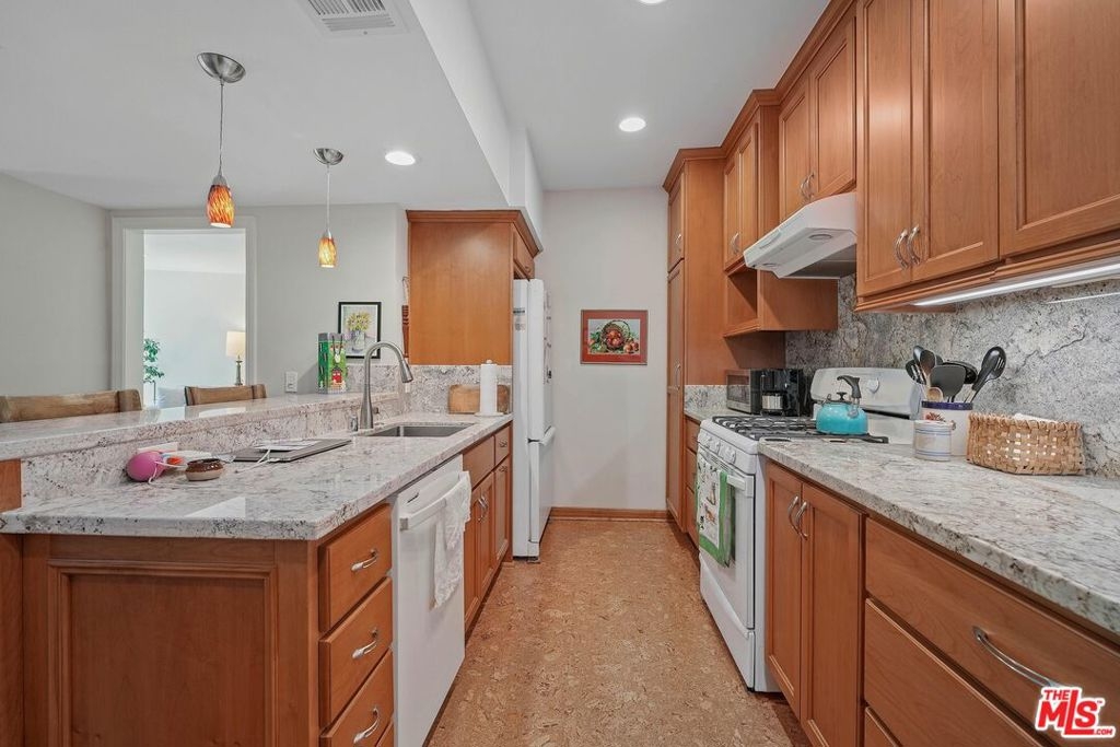 Presenting an upgraded and airy 2BD/2BA condo situated south of the Boulevard in Sherman Oaks. Step inside to discover a generously sized living room featuring a cozy fireplace, direct entry to the balcony and an abundance of natural light. Adjacent to the living room you'll find a versatile den perfect for use as an office or media room. The kitchen is complete with new appliances, sparkling counters, plenty of cabinet and prep space and opens to the dining room. Both bedrooms are en-suites separated from each other and the living spaces, for ideal privacy. The main bedroom offers a walk-in closet in addition to the wall-to-wall closets. The second bedroom has two wall closets as well as access to a private balcony. The home has new flooring throughout and in-unit laundry, and the unit comes with two side-by-side parking spots and a small storage space. HOA fee includes water. The complex is well maintained and offers a pool, spa and sauna. Located moments to all the dining and shopping on Ventura Blvd and easy access to the 101 and the Westside, welcome!Located moments to all the dining and shopping on Ventura Blvd and easy access to the 101 and the Westside, welcome!