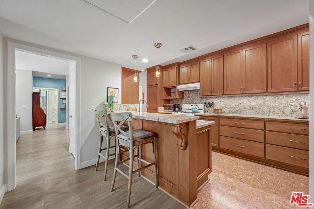 Presenting an upgraded and airy 2BD/2BA condo situated south of the Boulevard in Sherman Oaks. Step inside to discover a generously sized living room featuring a cozy fireplace, direct entry to the balcony and an abundance of natural light. Adjacent to the living room you'll find a versatile den perfect for use as an office or media room. The kitchen is complete with new appliances, sparkling counters, plenty of cabinet and prep space and opens to the dining room. Both bedrooms are en-suites separated from each other and the living spaces, for ideal privacy. The main bedroom offers a walk-in closet in addition to the wall-to-wall closets. The second bedroom has two wall closets as well as access to a private balcony. The home has new flooring throughout and in-unit laundry, and the unit comes with two side-by-side parking spots and a small storage space. HOA fee includes water. The complex is well maintained and offers a pool, spa and sauna. Located moments to all the dining and shopping on Ventura Blvd and easy access to the 101 and the Westside, welcome!Located moments to all the dining and shopping on Ventura Blvd and easy access to the 101 and the Westside, welcome!