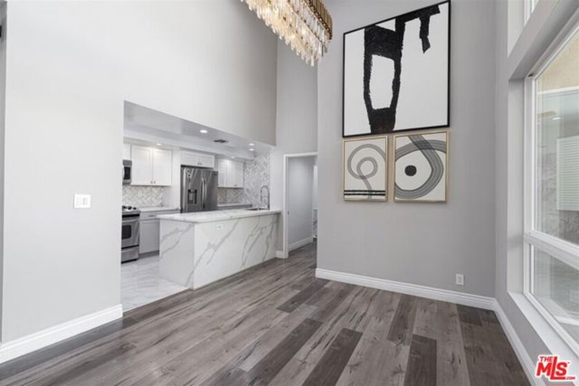 Welcome to one of the most sought-after top-floor, high-ceiling units in prime Sherman Oaks, south of the blvd! This beautifully updated condo blends modern comfort with timeless style. Flooded with natural light, it features dramatic high ceilings, wide-plank flooring, dual-pane windows, and an open-concept layout that feels spacious and airy. The living room centers around a sleek white brick fireplace and opens to a large private balcony with pool views perfect for relaxing or entertaining. A bonus space off the living room offers exceptional versatility, ideal for a home office, cozy den, or third bedroom. The large balcony provides plenty of space for outdoor dining and lounging. The updated kitchen offers quartz waterfall countertops, herringbone backsplash, stainless steel appliances, and ample cabinetry. Both bedrooms have refreshed ensuite baths and direct balcony access, with the primary suite featuring a walk-in closet. Additional highlights include in-unit side-by-side laundry, EV charging, BBQ hookup and updated finishes. The community offers a pool, spa, and moments from restaurants, cafes, shops, and transit.