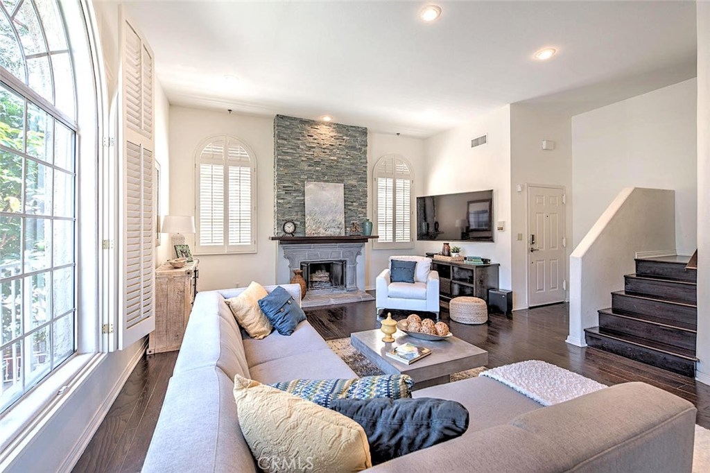 One of the finest locations in all of Sherman Oaks is home to this sophisticated, end unit executive townhouse in the Landmark Villas. An open floor plan awaits designed for both the casual & formal entertainer. Ceilings soar adding grand dimension to the space suffused in light from grand neo-Palladian windows. Espresso floors grace the living areas. Recessed lighting glows throughout. Elaborate baths feature high end lighting, rich textures & fine finishes. The kitchen is an open center for the culinary artist with stainless appliances, abundant cabinetry, granite countertops & breakfast bar. It becomes one with the dining room ideal for both formal & informal friend & family gatherings. The lower level media room is perfect for movie parties. A private rooftop deck with is the ideal venue for endless summer BBQs by day; relaxed al fresco leisure under the stars by night. Three bedrooms in all, including a lux master suite with walk-in closet round out the comfortable accommodations. Amenities includes a laundry room, storage, & direct access private 2-car garage! Located in the Sherman Oaks Charter School District & moments from the world class dining & entertainment along famed Ventura Blvd. This is the place where you want to live. Welcome!