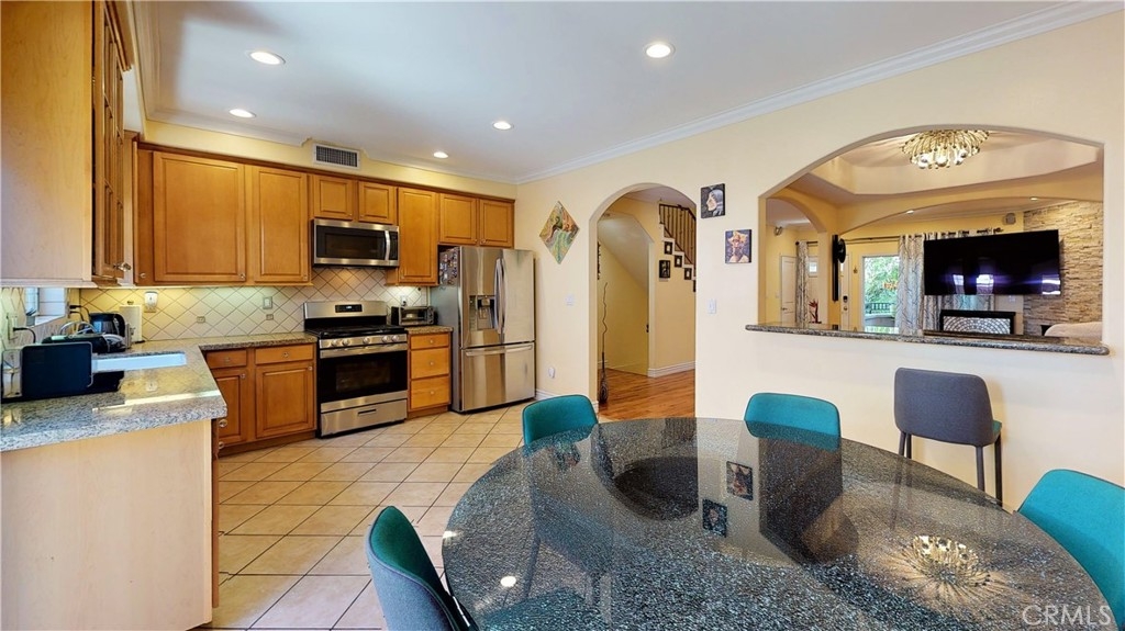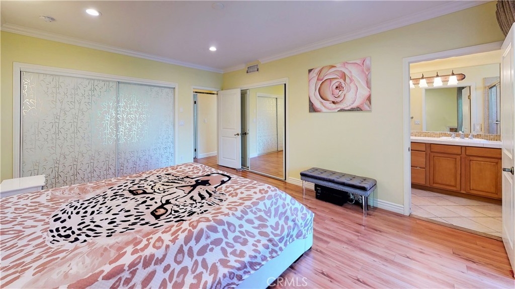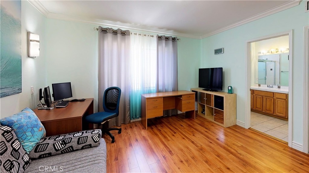 Absolutely stunning designer style townhome in much desired area of Sherman Oaks. Located on a quiet, tree-lined street makes it feel as you live in your own paradise. Gated complex with well maintain lush landscape, 2 car garage side by side, direct access to laundry room and bonus room downstairs that can be used as 3rd bedroom/Office/gym. Main floor features living room with fireplace and balcony, dining room, kitchen + eat-in area, powder room and private patio outside of eat-in kitchen. Maple cabinets, granite counters. Open, 2 beds + 2 baths upstairs. Master bedroom with its own bath with double sinks for maximum convenience and private balcony.