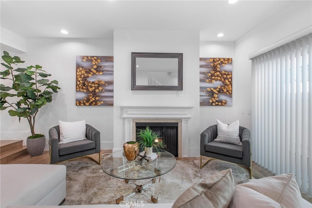 This spacious townhome offers a comfortable and modern living space. Stepping inside, you enter a bright and inviting living room. The natural light floods the space, highlighting the freshly painted walls and new flooring, giving the entire area a warm ambiance. The focal point of the living room is a cozy fireplace, perfect for relaxing evenings or gatherings with friends and family. The living room seamlessly flows into a generous dining area, creating an open-concept living space perfect for hosting dinners and celebrations. Remodeled kitchen, equipped with sleek stainless steel appliances and adorned with beautiful granite countertops. This modern provides ample space for cooking. Half bathroom conveniently located on the first floor. New double-paned windows and sliding door. Recess lighting throughout. Upstairs, you'll find two spacious bedrooms, each with its own remodeled bathroom. The master suite is particularly impressive, featuring a vaulted ceiling that adds an element of grandeur to the room. The suite also boasts two closets, providing an abundance of storage space. The remodeled bathrooms exude luxury and sophistication, with stylish fixtures and elegant finishes. This townhome offers the convenience of an inside laundry area Additionally, private patio with no neighbors above or below, you can enjoy a peaceful and quiet atmosphere, Two dedicated parking spots, providing secure and easy access to your home.Great location, close to restaurants and cafes