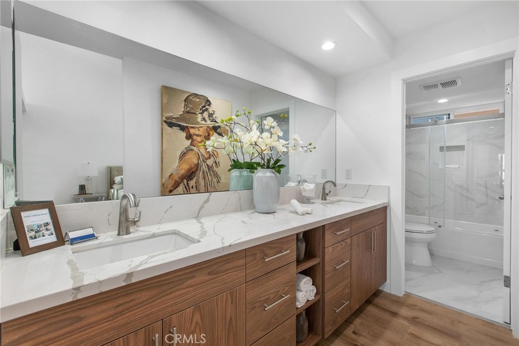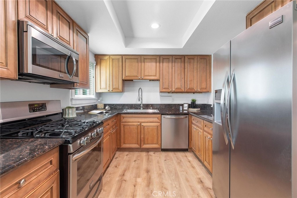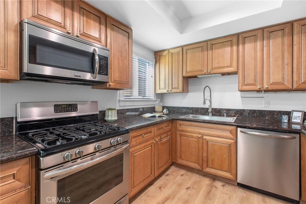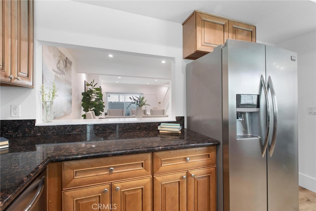 This spacious townhome offers a comfortable and modern living space. Stepping inside, you enter a bright and inviting living room. The natural light floods the space, highlighting the freshly painted walls and new flooring, giving the entire area a warm ambiance. The focal point of the living room is a cozy fireplace, perfect for relaxing evenings or gatherings with friends and family. The living room seamlessly flows into a generous dining area, creating an open-concept living space perfect for hosting dinners and celebrations. Remodeled kitchen, equipped with sleek stainless steel appliances and adorned with beautiful granite countertops. This modern provides ample space for cooking. Half bathroom conveniently located on the first floor. New double-paned windows and sliding door. Recess lighting throughout. Upstairs, you'll find two spacious bedrooms, each with its own remodeled bathroom. The master suite is particularly impressive, featuring a vaulted ceiling that adds an element of grandeur to the room. The suite also boasts two closets, providing an abundance of storage space. The remodeled bathrooms exude luxury and sophistication, with stylish fixtures and elegant finishes. This townhome offers the convenience of an inside laundry area Additionally, private patio with no neighbors above or below, you can enjoy a peaceful and quiet atmosphere, Two dedicated parking spots, providing secure and easy access to your home.Great location, close to restaurants and cafes