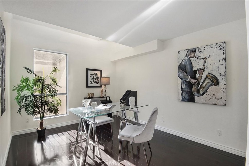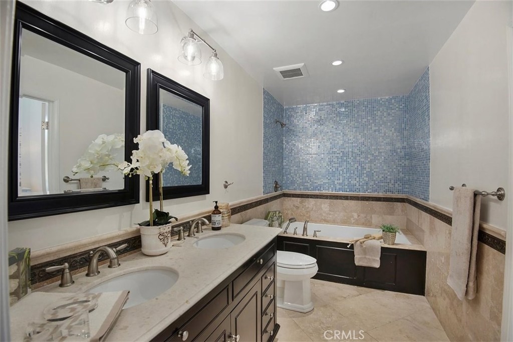 Stunning tri level townhome located in a quaint 8 unit building only 1 block from Ventura Blvd! Built in 1989, it includes 4 bedrooms, 3.5 bathrooms, a loft, roof top patio and 2,061 square feet of living space. The sundrenched living room includes a beautifully mantled fireplace and access to a quaint balcony. The spacious dining area is centrally located and includes a wet bar and wine rack. The sleek kitchen includes a breakfast bar, granite countertop, stainless steel appliances and new tile flooring. The convenient guest bathroom includes a new vanity and tile flooring. The lower level bedroom suite boasts a large closet and a remodeled full bathroom with a Walnut colored vanity and Travertine tile tub surround and flooring. The guest bedrooms are comfortable in size and have large closets. Both are serviced by the full bathroom which includes a new vanity and tile flooring. The sophisticated master suite includes a walk in closet with built in cabinetry and access to a quaint balcony. The master bathroom includes a Mocha colored his & her dual vanity with a stone countertop, vibrant tile tub surround and Travertine tile wainscoting and flooring. The loft is the perfect home office and opens to the huge roof top patio! Additional features include refinished hardwood flooring, laminate flooring, fresh interior paint, recessed lighting, new lighting fixtures, central air & heat, utility closet and a tandem double attached garage with direct access to unit.