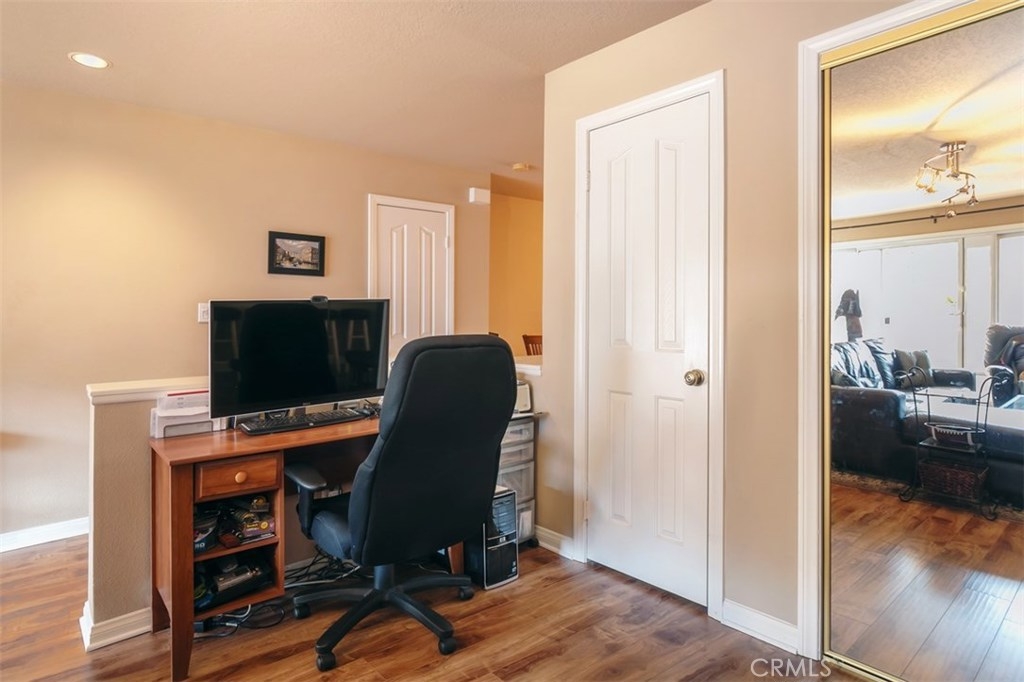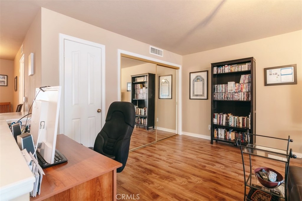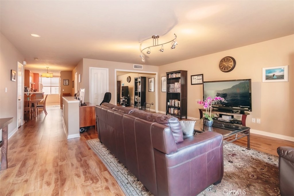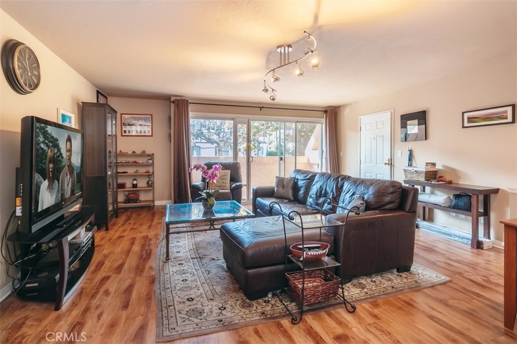 This Sherman Oaks condominium is situated in the ideal location for all your needs. Located a few blocks from the Fashion Square Mall, Ventura Blvd, tons of shopping, restaurants and easy freeways access. This one bedroom home has a large open living room with brand new distressed wood laminate flooring, stylish track lighting, custom curtains, dual pane sliders and a spacious balcony. The balcony provides the perfect backdrop for your BBQ and potted plants. The living room is also adjacent to the den/office area which can easily be converted into a second bedroom. The light and bright kitchen has white appliances, tiled counter tops and a separate eating area. The oversized Master bedroom suite boasts a ceiling fan, a finished closet and an en-suite bathroom. The low HOA fees include earthquake insurance, water, trash, underground parking, Free Laundry and common area gardening. Don't miss out on this gem.