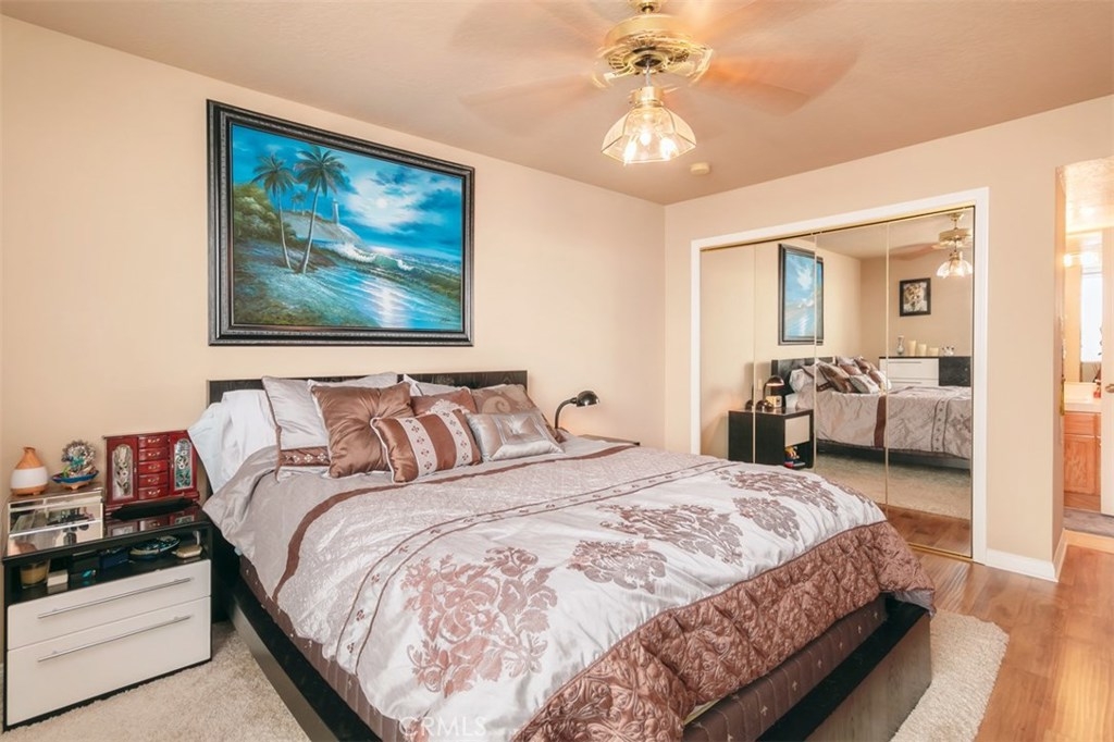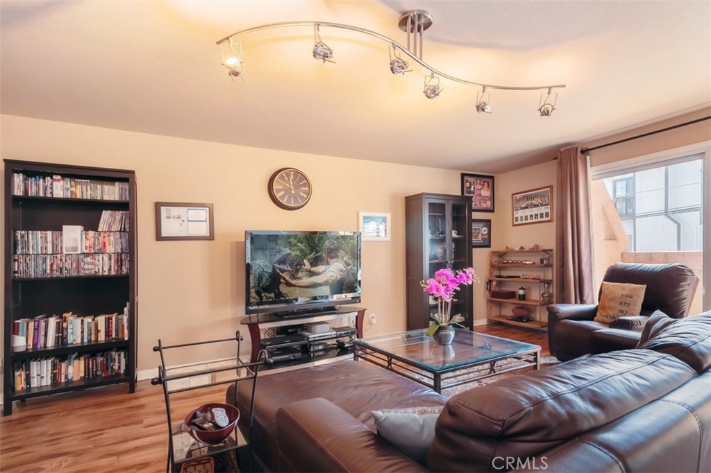 This Sherman Oaks condominium is situated in the ideal location for all your needs. Located a few blocks from the Fashion Square Mall, Ventura Blvd, tons of shopping, restaurants and easy freeways access. This one bedroom home has a large open living room with brand new distressed wood laminate flooring, stylish track lighting, custom curtains, dual pane sliders and a spacious balcony. The balcony provides the perfect backdrop for your BBQ and potted plants. The living room is also adjacent to the den/office area which can easily be converted into a second bedroom. The light and bright kitchen has white appliances, tiled counter tops and a separate eating area. The oversized Master bedroom suite boasts a ceiling fan, a finished closet and an en-suite bathroom. The low HOA fees include earthquake insurance, water, trash, underground parking, Free Laundry and common area gardening. Don't miss out on this gem.