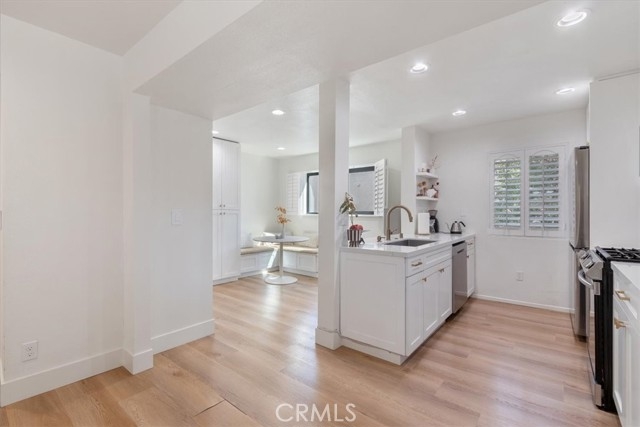 Light, bright, and tastefully remodeled from top to bottom, this 2-bedroom, 3-bath townhome (approx. 1,552 sq. ft.) offers a perfect blend of modern upgrades and timeless design. Located in a highly sought-after, resort-style community, this end unit features an attached 2-car garage, private patio, and direct access to lush, tree-lined walkways. Step inside to soaring, lofted ceilings and an open split-level layout that flows seamlessly from the remodeled kitchen and dining area to the spacious living room with cozy fireplace and outdoor patio—perfect for entertaining or relaxing. A versatile bonus space with a serving bar adds flexibility for a home office, den, or additional dining area. The chef’s kitchen, fully remodeled in 2018 and refreshed again in 2022, showcases crisp white cabinetry, quartz countertops, marble herringbone backsplash, stainless steel sink, and new Samsung appliances (2022). Upstairs, two spacious bedrooms each feature remodeled baths (2018) with high-end finishes, including a deep soaking tub (2022) in the hall bath. The luxurious primary suite offers a spa-like en suite with dual sinks, oversized shower with floor-to-ceiling glass, and a large walk-in closet. This home has been impeccably maintained with numerous upgrades: new windows (2020–2021), new HVAC (2019), SMART garage motor (2022), new washer/dryer (2019), and new refrigerator (2019). The HOA recently enhanced the exterior with a new front door (2021) and dusk-to-dawn exterior lighting (2020). Oak Pointe offers serene, park-like living with access to two pools and spas, three tennis courts, and two pet-friendly parks, plus HOA dues that include internet, water, and trash. Ideally located near the 405 & 101 freeways, shopping, dining, and all that Sherman Oaks has to offer!