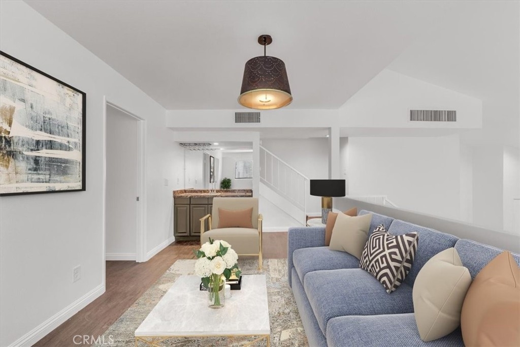 Welcome to this bright and spacious end-unit townhome nestled in the serene interior of the highly sought-after Oak Pointe Community in Sherman Oaks. With 3 bedrooms and 3 bathrooms, this split-level residence offers the perfect blend of comfort, style, and convenience. Enjoy open-concept living with soaring ceilings, abundant natural light, and a decorative fireplace that sets the tone for cozy evenings. Two private patios offer inviting outdoor spaces for relaxation or entertaining. The kitchen features a charming breakfast nook, recessed lighting, and a ceiling fan, while the formal dining area and wet bar enhance the home's entertaining appeal. A flexible-use room functions perfectly as a home office or third bedroom. The spacious primary suite includes a walk-in closet, dual vanities, and an en-suite bathroom. Secondary bedrooms and baths are thoughtfully situated for privacy and ease. Direct-access 2-car garage provides ample storage and an in-unit laundry area. Enjoy resort-style community amenities including: Multiple pools and hot tubs Lighted tennis, pickleball, and basketball courts Pet-friendly green spaces and walking paths Low HOA dues include water, trash, basic cable/internet, earthquake insurance, and exterior maintenance. Ideally located just minutes from the Sherman Oaks Galleria, Ventura Blvd, top-rated Kester Elementary, and with convenient access to the 101 and 405 freeways, this home offers the best of LA living. Some listing images have been digitally staged.