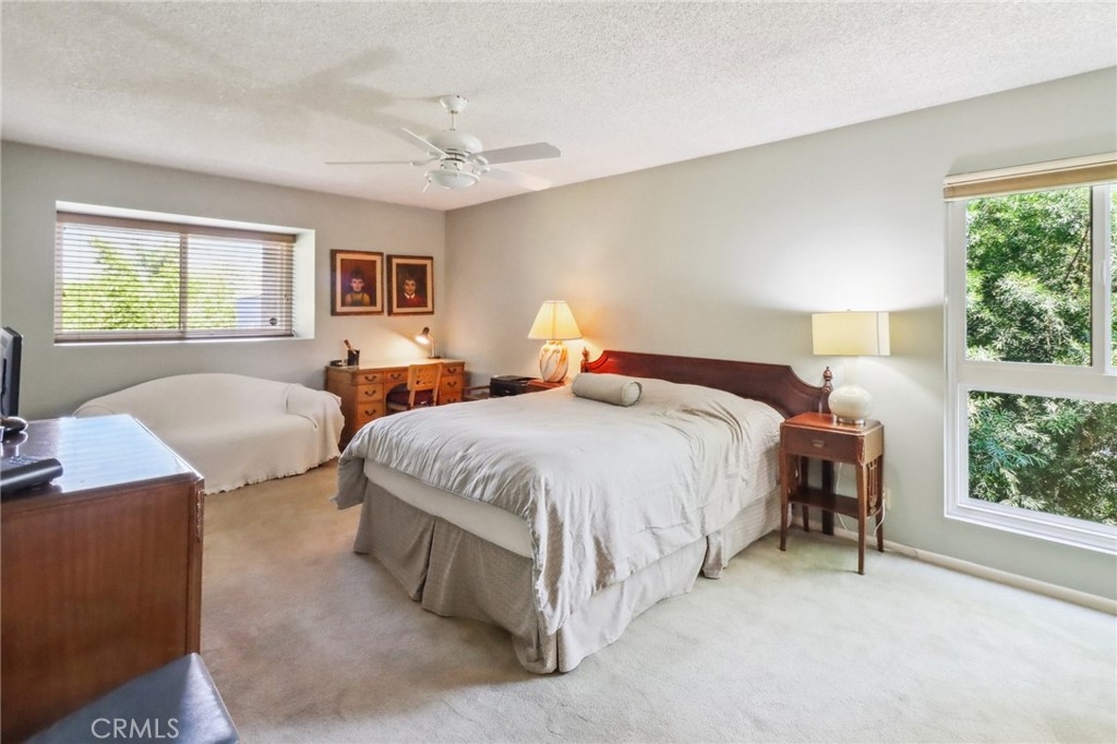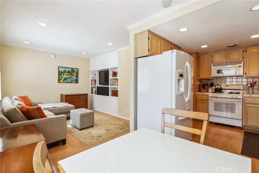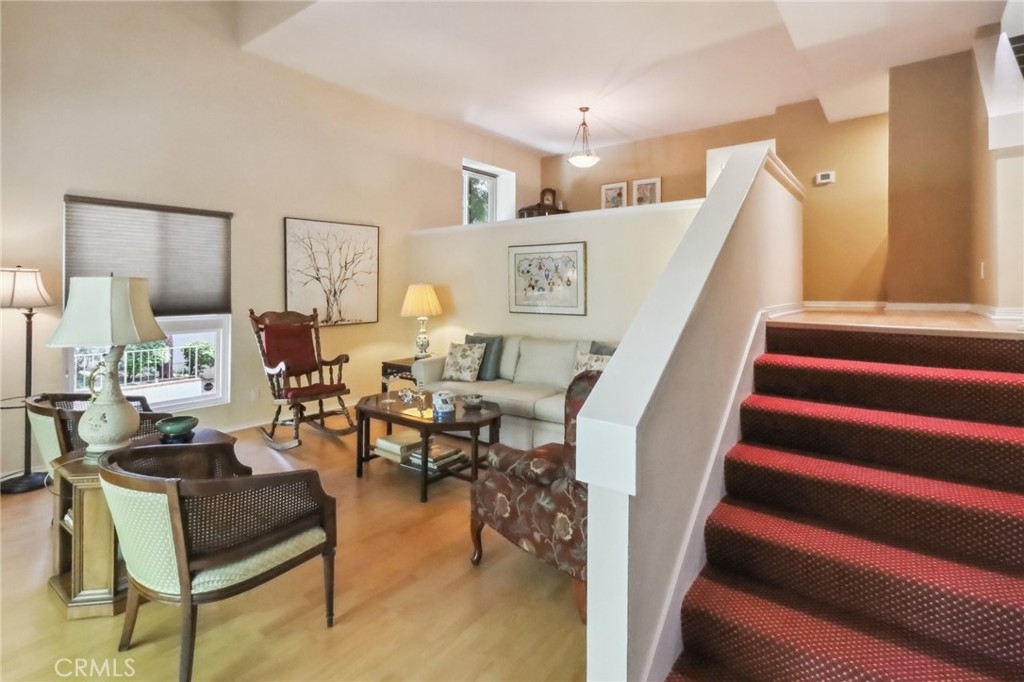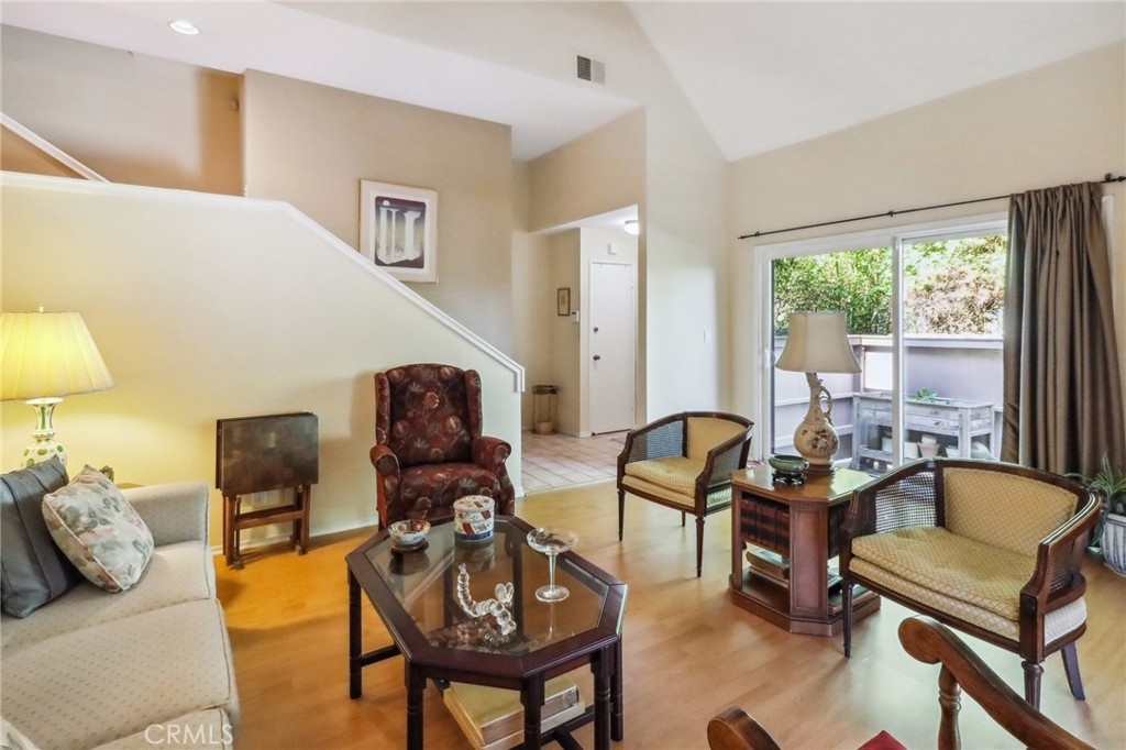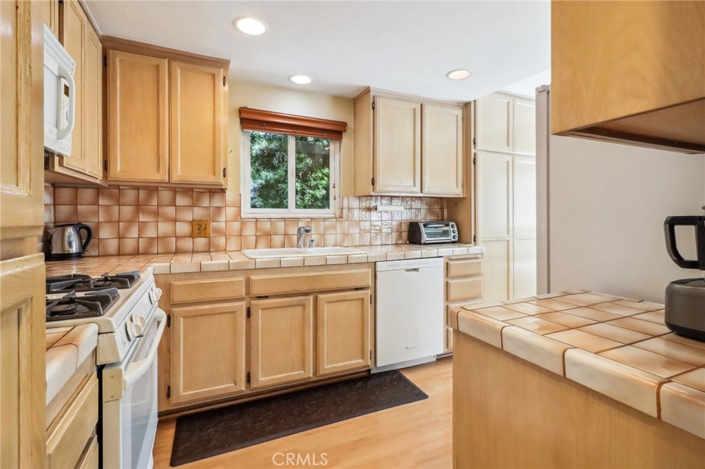 Light and bright end unit townhome in Oak Pointe. This spacious unit is located to the rear of the complex for maximum privacy. The large living room has cathedral ceilings and a lovely fireplace. Other features include a dining room with wet bar, eat-in kitchen and family room with built ins (easily converted to a 3rd bedroom). On the upper level, the primary bedroom suite includes ample closet space, dressing area and en-suite bath. There are 2 additional full baths, one on each level. The oversized, direct access 2 car garage has built in storage cabinets and laundry. Oak Pointe complex has lushly landscaped grounds and includes 3 pool and spa areas, lighted tennis and pickle ball courts. It is conveniently located close to dining, shopping and has easy access to freeways and the westside.