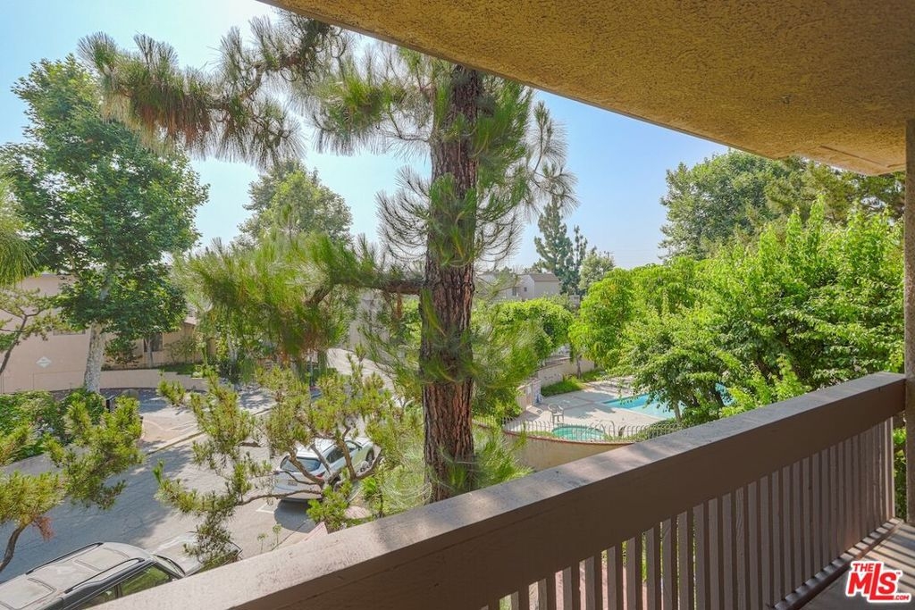 Welcome to this amenity-rich condominium, where convenient features and thoughtful updates come together to elevate everyday living. Inside, the highlight is truly the in-unit washer and dryer, offering privacy and ease that far surpasses the hassle of shared or community laundry facilities giving you the freedom to do laundry on your own schedule, in your own space. The home itself is filled with upgrades designed for both comfort and style: newer carpets, fresh paint, modern lighting, and sleek hardware throughout create a polished, move-in-ready feel. The spacious living area features a cozy gas fireplace and direct access to your private balcony, ideal for morning coffee or a quiet evening retreat, with bonus storage included. The kitchen and bathrooms are both updated with resurfaced cabinetry, granite countertops, and contemporary stainless steel appliances, paired with upgraded enclosures that bring both function and elegance to the home. The primary bedroom offers a peaceful retreat with a walk-in closet and tranquil views of mature pine trees. Adding extra convenience are features like a Nest thermostat, upgraded garbage disposal, SimpliSafe security system, and assigned garage storage. Two tandem parking spaces, basic cable service (covered by your HOA), and the advantage of only one shared wall further enhance everyday ease.Beyond your front door, you'll enjoy a wealth of community amenities designed for recreation and relaxation. Multiple pools and spas let you unwind at your leisure, while the resurfaced pickleball court, upgraded tennis courts, and basketball court provide endless opportunities for play and fitness. Beautifully landscaped grounds provide refreshing green spaces perfect for casual walks, complete with dog waste stations for pet owners. HOA dues also include earthquake insurance for added peace of mind.Situated in the highly sought-after Kester Elementary School area, this condominium is part of a well-maintained community with recent termite work, a newer roof (7-8 years), and a new HVAC system installed in 2022. This home isn't just well-updated, it's nestled in a vibrant environment that prioritizes comfort, safety, and access to rich amenities at every turn.