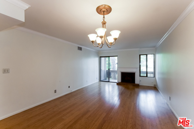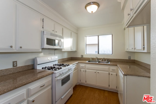 This Sherman Oaks one-story offers a fireplace, granite kitchen countertops, a master bath separate tub and shower with dual sinks and cultured marble countertop, and a covered balcony.