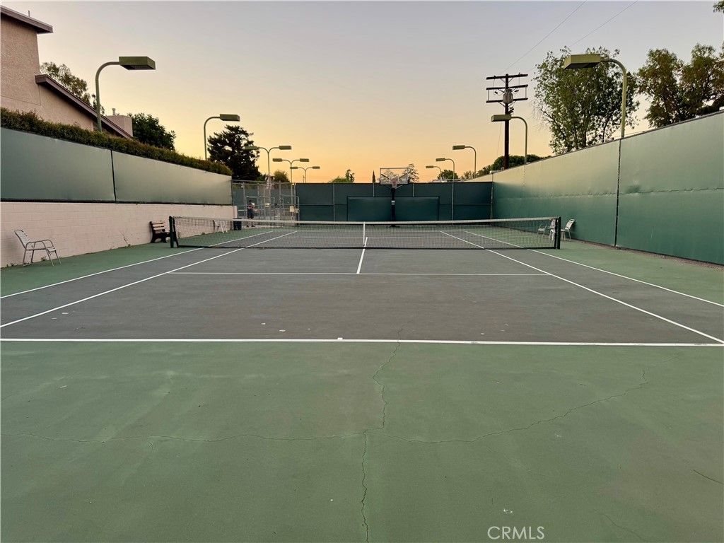 Desirable and unique Oak Point pet friendly community. Two bedrooms, with one full and one-half bath, plus a private master vanity dressing area. Tastefully remodeled throughout with high quality materials, including recessed lighting, a kitchen with custom cabinetry featuring quiet close hinges and drawers, granite counters with tile backsplash, stainless steel appliances, microwave hood and tile flooring. Fully remodeled powder room, bath vanities with granite counters, raised panel doors. Laminate flooring and hardwoods, with extra high base moldings. Other features include; loads of bedroom closet space with custom improvements as well as two first floor guest closets, gas fireplace, included washer/dryer set, direct access to subterranean garage parking and storage locker, private north facing balcony, windows with new custom shutters and sky lighted staircase. Community features include; pristine park-like grounds, multiple tennis courts, multiple pool and spas, sauna, and recreation room. Additionally, the HOA is earthquake insured. Lastly the property is conveniently located near the intersection of the 101 and 405 freeways, close to shopping, dining and entertainment centers.