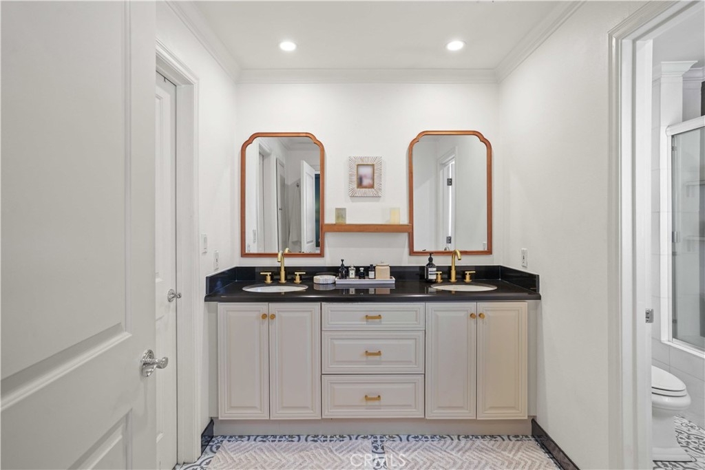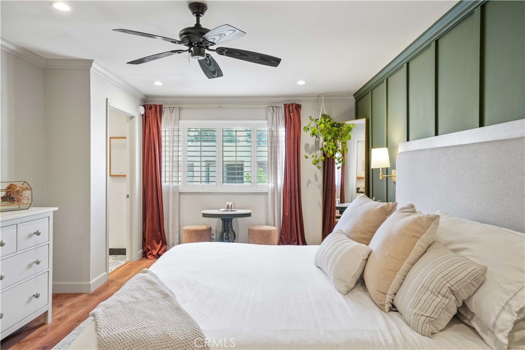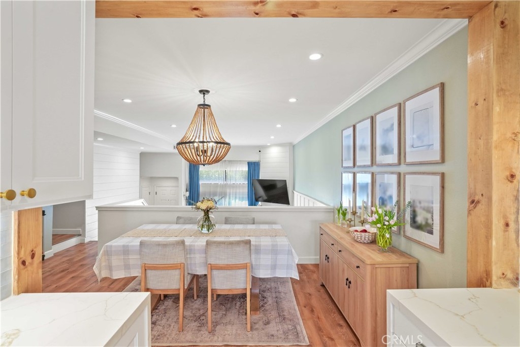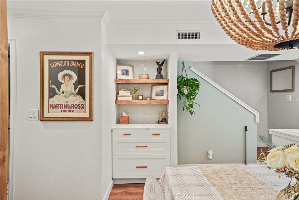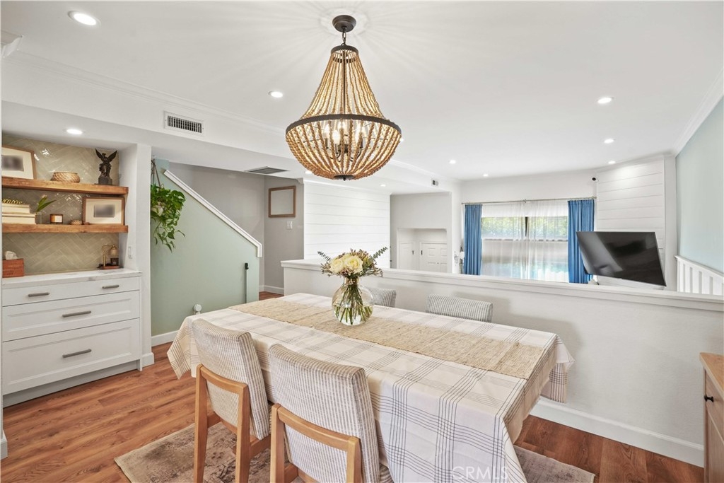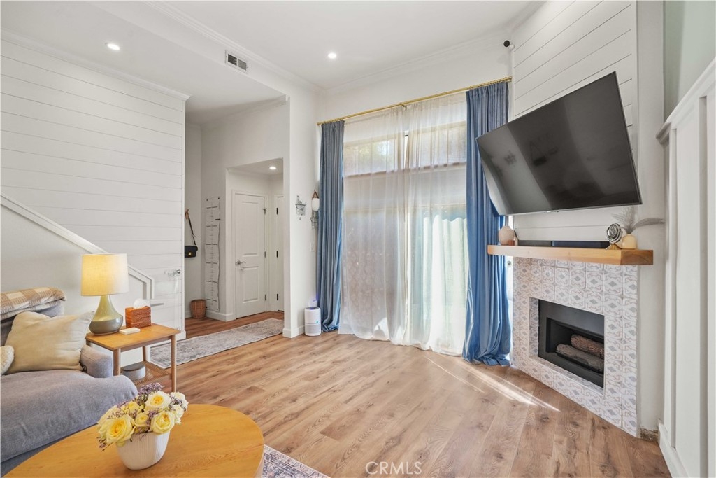 Exquisitely renovated Sherman Oaks townhome with elevated style and exceptional upgrades, located in the prime verdant enclave of the highly sought-after Oak Pointe Community. At the heart of the home is a newly reimagined kitchen designed with elegance and functionality in mind. A Bosch 5-burner cooktop with custom hood, Bosch dishwasher, and KitchenAid Oven and Mircrovave pair with an offset farmhouse sink, while striking waterfall quartz countertops and a counter-to-ceiling tile backsplash create a dramatic focal point. Soft-close cabinetry with in-cabinet and under-cabinet lighting and a custom pinewood threshold complete this showpiece kitchen—perfect for family living and entertaining. Soaring ceilings and abundant natural light enhance a split-level design where elegance meets comfort. Engineered hardwood flooring in rich wood tones flows throughout, while crown molding, plantation shutters, recessed lighting, and a gas fireplace with bespoke mantle add refined touches. Board-and-batten accents and custom shiplap bring warmth, texture, and architectural distinction. Sliding glass door opens to a sun-filled patio for coffee, BBQs, or gardening. Upstairs, the oversized primary suite includes space for a sitting area, dual closets, and an ensuite bath with dual sinks and shower-in-tub. Freshly carpeted stairs lead to a newly renovated laundry room with quartz folding counter and cabinetry. Direct 2-car garage access and a bonus 300 SqFt basement with shelving offer endless storage and hobby potential. One of the finest units in all of Oak Pointe, with exclusive access to the community’s only year-round heated pool, plus spa, tennis, pickleball, basketball, dog parks, green spaces, and pet friendly walking paths. HOA dues include water, trash, internet/cable, earthquake insurance, landscaping, and community events. Families will appreciate the Blue Ribbon Kester Avenue Elementary School within boundary, and the location offers walking distance to Ventura Blvd, shops, cafés, dining, and Sepulveda Basin Recreation Area with golf, trails, and sports fields. Quick freeway access completes the lifestyle. Don’t let this one-of-a-kind Oak Pointe residence slip away—schedule your private showing today and step into a home that truly stands apart.