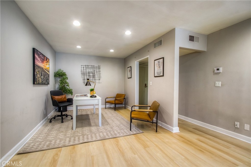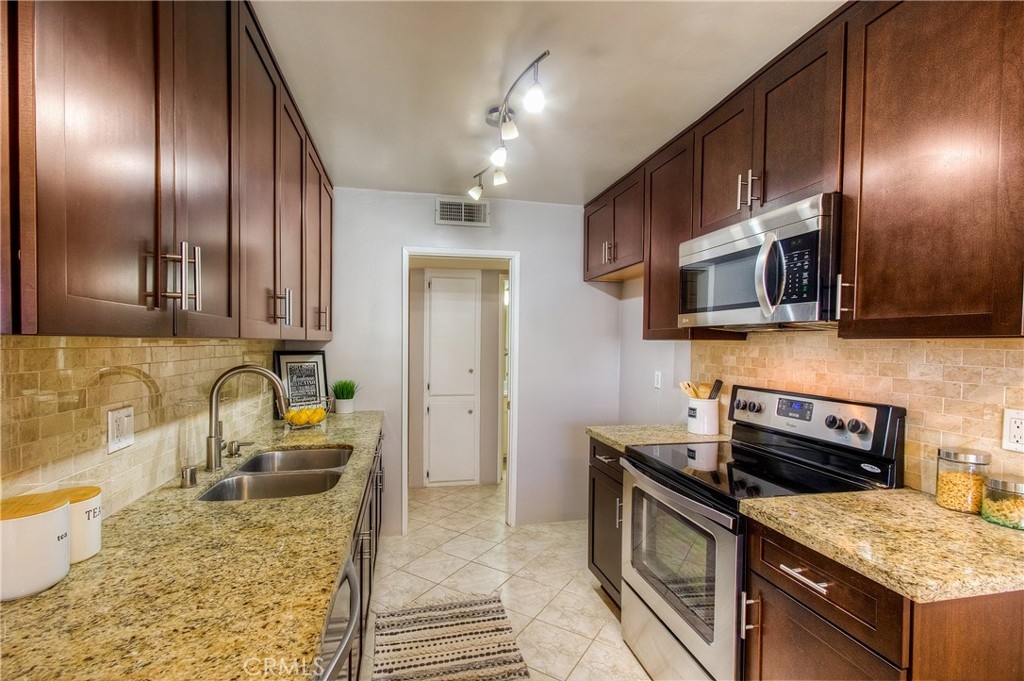 Conveniently situated just south of Ventura Boulevard, this highly sought-after and secure residence offers a prime location near a variety of trendy coffee shops, restaurants, and an abundance of both big-box and boutique shopping options. Notably, the popular Whole Foods market and Ralphs Fresh Fare are both just a stone's throw away. Recently updated, including new HVAC, this bright and spacious 1-bedroom, 1.5-bath condo is nestled on a serene, tree-lined street in prime Sherman Oaks. The primary suite is generously sized and features a walk-in closet, providing ample storage space. The large, updated bathroom adds a touch of luxury to your living experience. The open floor plan of the main living area is both inviting and functional, creating an ideal space for relaxation and entertaining. With its well-proportioned layout, the condo feels remarkably spacious. The contemporary galley kitchen, complete with a sitting area, boasts granite countertops, pristine cabinetry, and high-quality appliances, ensuring a delightful cooking experience. As a resident of this community, you will have access to desirable HOA amenities that enhance your lifestyle. Enjoy the secure building, convenience of a heated outdoor pool and spa, assigned underground parking, and additional storage space. Additionally, community laundry facilities are available on each floor, making everyday tasks effortless. Don't miss out on this incredible opportunity to call this bright and spacious condo your new home. Take action now and embrace the vibrant lifestyle that Sherman Oaks has to offer