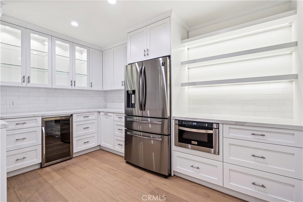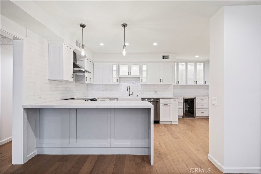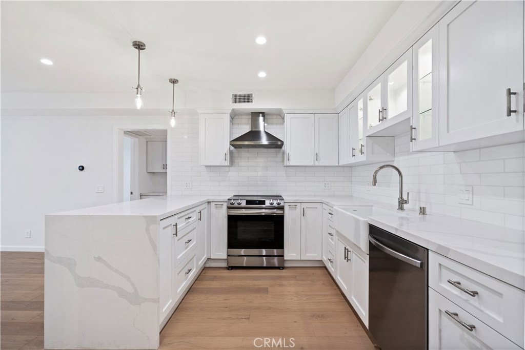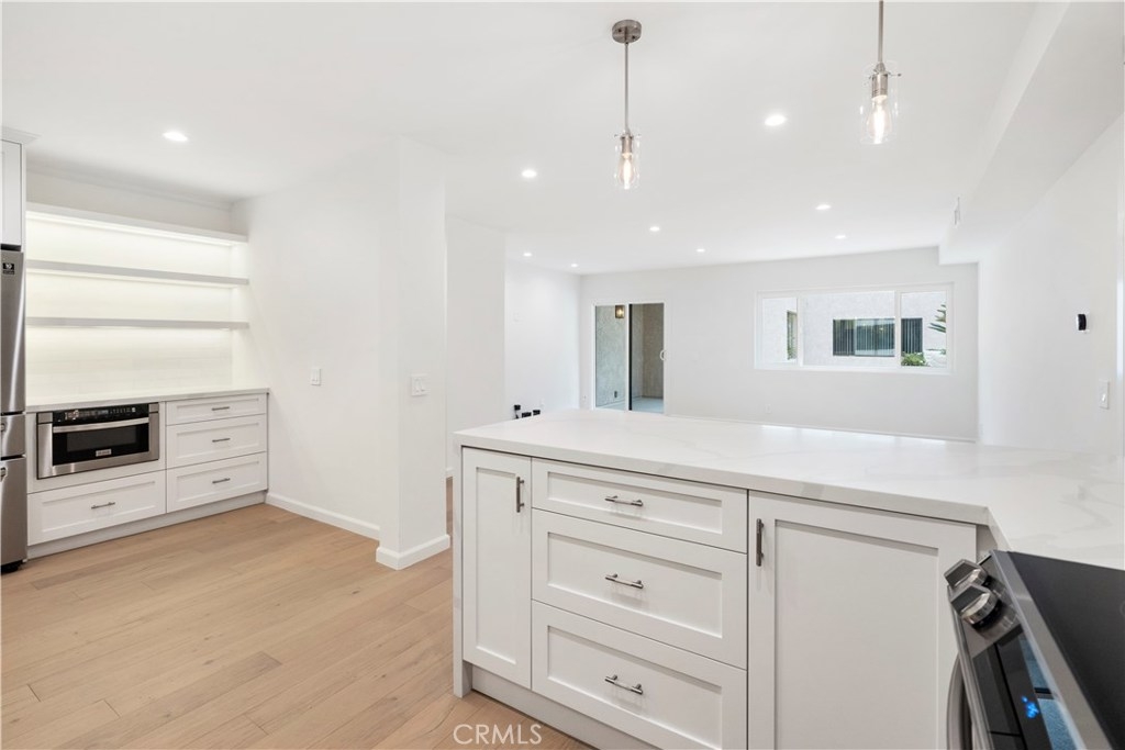OVERSIZED, stunning, bright, corner unit in the Heart of Sherman Oaks! Spacious open floor plan features a living room with New engineered hardwood floors and new recessed lighting! Highlights of this Fully Remodeled Condo features, Slab Quartz countertops with Stone backsplash, a Farmhouse sink, Nest temperature and New Samsung Appliances! Unit has EZ Elevator entrance from Security Garage. Everything in this Kitchen is Brand New! This Kitchen is Huge and has custom built in cabinets which are Solid Wood with soft closing drawers, Brand-New Stainless-Steel Appliances, a Drawer Microwave, and a Wine cooler! The bathroom has a Walk-in shower with New Marble tiled shower, quartz counters, dual sinks, and a soaking tub! Recessed lighting is throughout the home with New interior Doors and New double-pane Windows! The balcony has a nice private view with sliding doors from the living room! This corner unit is SMART, ask Siri to control the lights! There is one assigned parking space remarkably close to the elevator and the Condo.