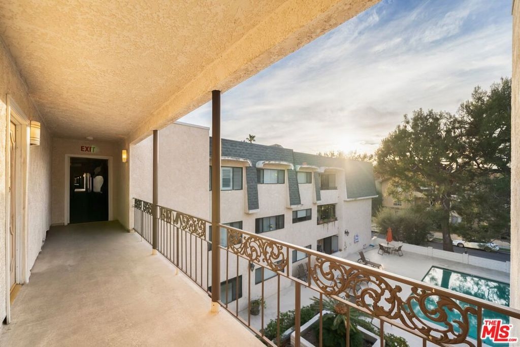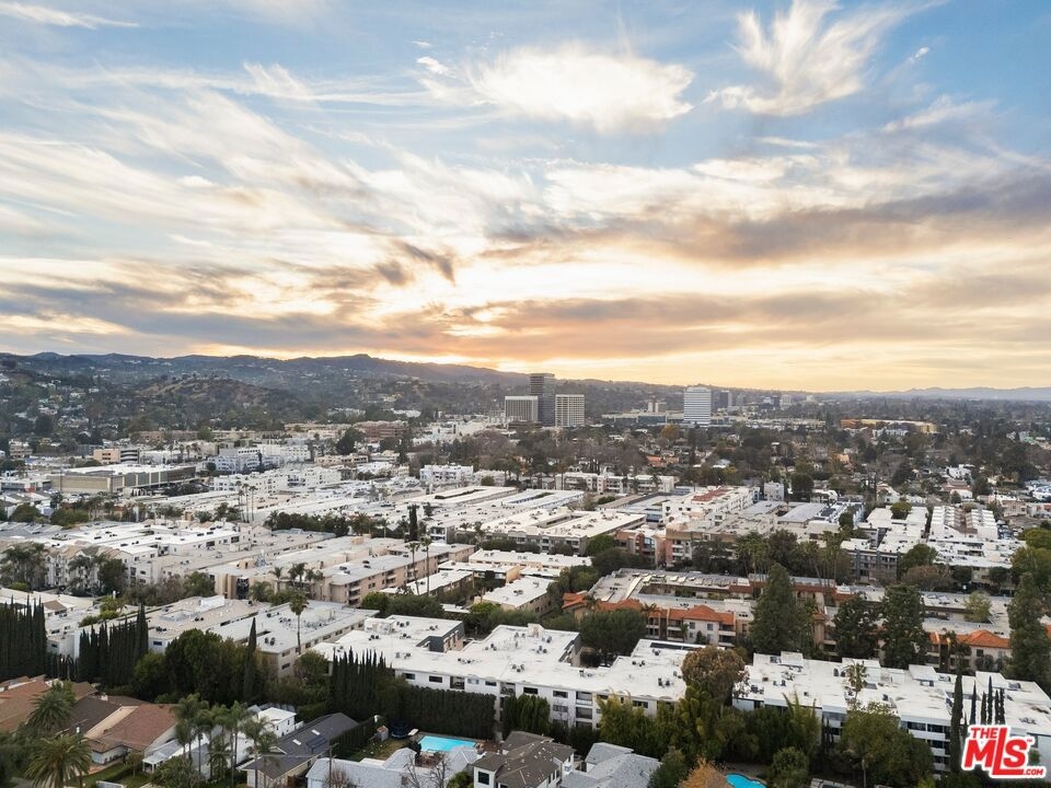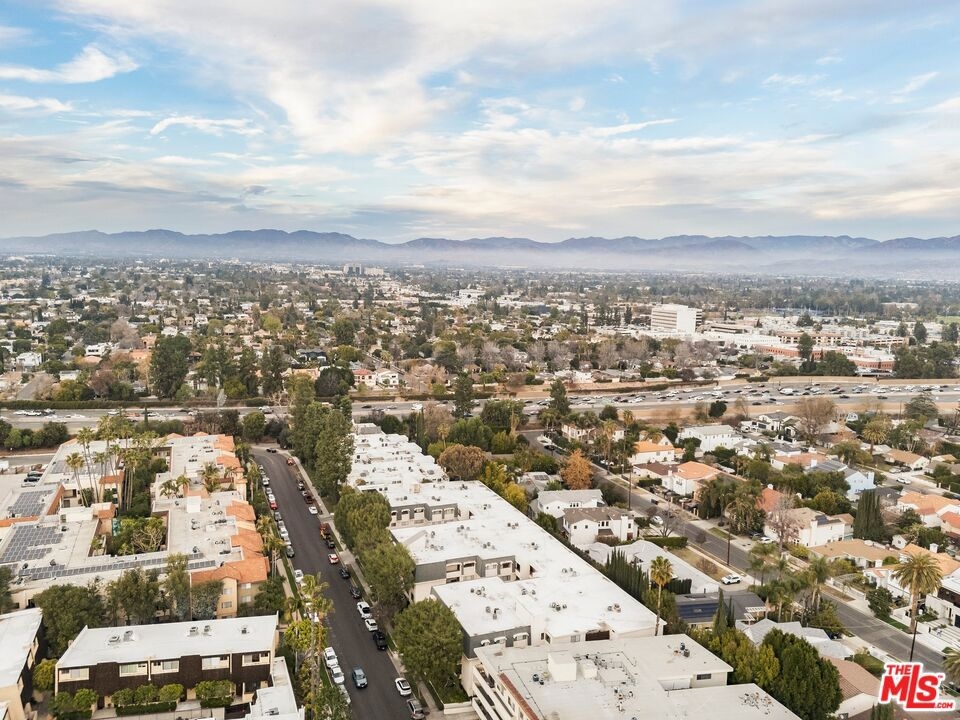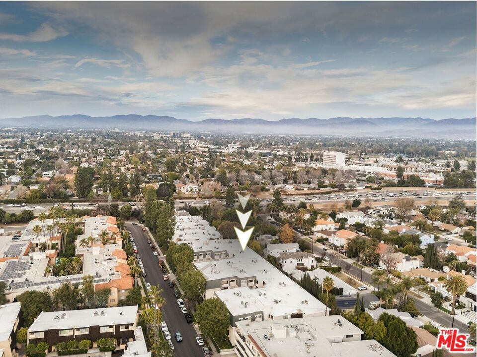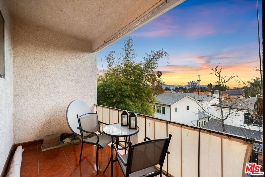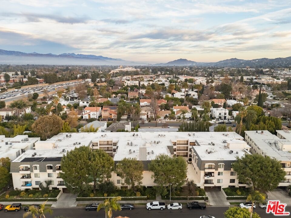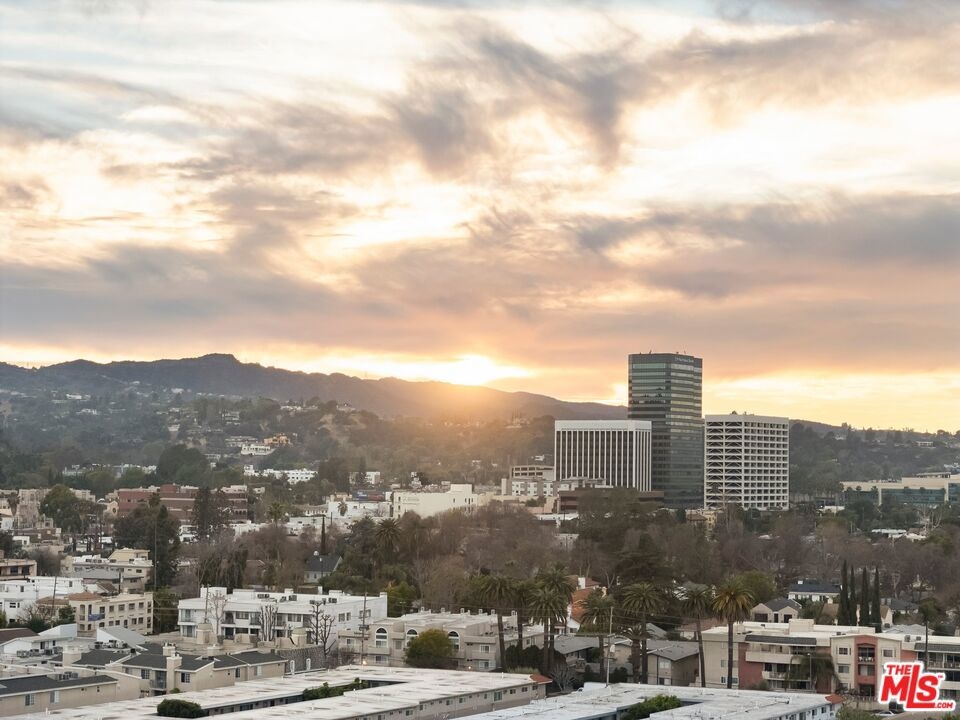 This stunning top-floor penthouse in prime Sherman Oaks offers an exceptional blend of space, light, and breathtaking mountain and hillside views. Upon entering, you'll immediately notice the abundance of natural light that enhances the airy ambiance, complemented by a stylish wallpaper-accented feature wall. The step-down living room creates a distinct yet open feel, seamlessly connecting to the formal dining area. A well-designed floor plan ensures plenty of storage throughout, including generous closet space. The kitchen is both functional and inviting, featuring tile countertops, ample cabinetry, and a cozy breakfast nook perfect for casual dining. Skylights illuminate the space, including in the hallway bathroom, bringing in even more natural light. The second bedroom is spacious and versatile, while the primary suite offers a true retreat with three closets, including a walk-in, and an en suite bathroom for ultimate privacy and convenience. A tiled balcony off the living room provides the perfect outdoor escape, where you can relax and take in the sweeping views of the hills and mountains, embracing the indoor-outdoor California lifestyle. Thoughtful updates, such as new tile floors, upgraded Sisal sustainable carpet, and fresh paint, enhance the homes appeal, making it move-in ready while still offering potential for customization. This well-maintained building features desirable amenities, including a sparkling pool with a sun deck, two dedicated parking spaces, an additional storage unit, and controlled access for added security. Ideally situated near Ventura Boulevard, you'll enjoy the convenience of nearby shopping, dining, and transportation, making this penthouse an incredible opportunity to experience the best of Sherman Oaks living.