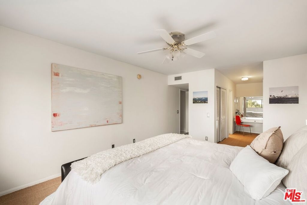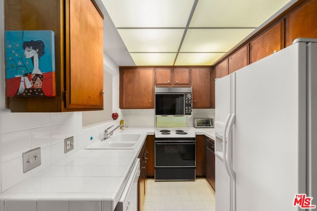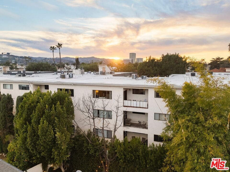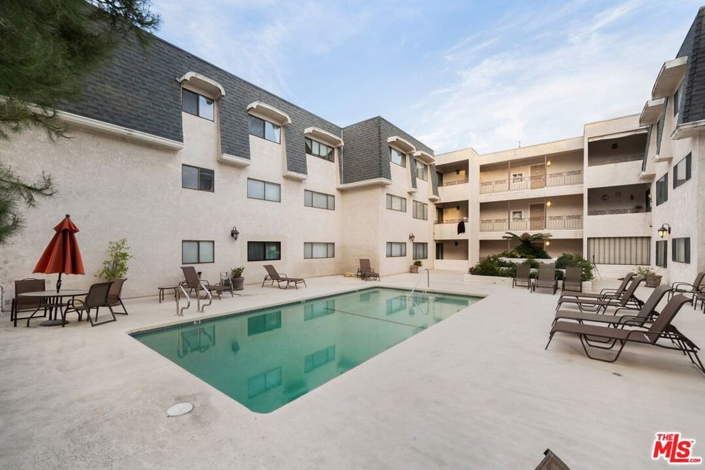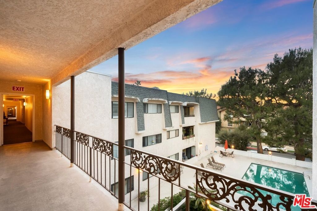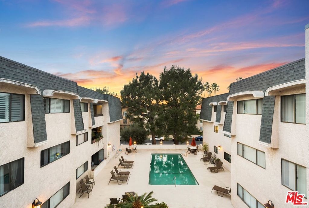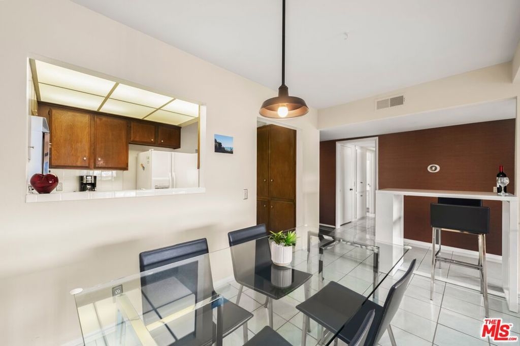 This stunning top-floor penthouse in prime Sherman Oaks offers an exceptional blend of space, light, and breathtaking mountain and hillside views. Upon entering, you'll immediately notice the abundance of natural light that enhances the airy ambiance, complemented by a stylish wallpaper-accented feature wall. The step-down living room creates a distinct yet open feel, seamlessly connecting to the formal dining area. A well-designed floor plan ensures plenty of storage throughout, including generous closet space. The kitchen is both functional and inviting, featuring tile countertops, ample cabinetry, and a cozy breakfast nook perfect for casual dining. Skylights illuminate the space, including in the hallway bathroom, bringing in even more natural light. The second bedroom is spacious and versatile, while the primary suite offers a true retreat with three closets, including a walk-in, and an en suite bathroom for ultimate privacy and convenience. A tiled balcony off the living room provides the perfect outdoor escape, where you can relax and take in the sweeping views of the hills and mountains, embracing the indoor-outdoor California lifestyle. Thoughtful updates, such as new tile floors, upgraded Sisal sustainable carpet, and fresh paint, enhance the homes appeal, making it move-in ready while still offering potential for customization. This well-maintained building features desirable amenities, including a sparkling pool with a sun deck, two dedicated parking spaces, an additional storage unit, and controlled access for added security. Ideally situated near Ventura Boulevard, you'll enjoy the convenience of nearby shopping, dining, and transportation, making this penthouse an incredible opportunity to experience the best of Sherman Oaks living.