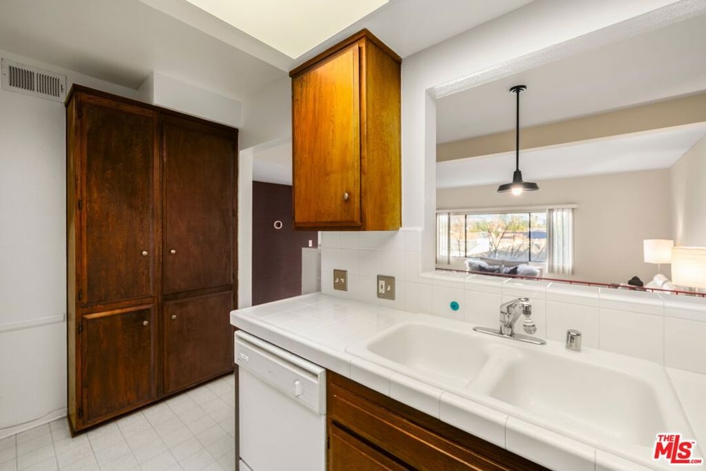 This stunning top-floor penthouse in prime Sherman Oaks offers an exceptional blend of space, light, and breathtaking mountain and hillside views. Upon entering, you'll immediately notice the abundance of natural light that enhances the airy ambiance, complemented by a stylish wallpaper-accented feature wall. The step-down living room creates a distinct yet open feel, seamlessly connecting to the formal dining area. A well-designed floor plan ensures plenty of storage throughout, including generous closet space. The kitchen is both functional and inviting, featuring tile countertops, ample cabinetry, and a cozy breakfast nook perfect for casual dining. Skylights illuminate the space, including in the hallway bathroom, bringing in even more natural light. The second bedroom is spacious and versatile, while the primary suite offers a true retreat with three closets, including a walk-in, and an en suite bathroom for ultimate privacy and convenience. A tiled balcony off the living room provides the perfect outdoor escape, where you can relax and take in the sweeping views of the hills and mountains, embracing the indoor-outdoor California lifestyle. Thoughtful updates, such as new tile floors, upgraded Sisal sustainable carpet, and fresh paint, enhance the homes appeal, making it move-in ready while still offering potential for customization. This well-maintained building features desirable amenities, including a sparkling pool with a sun deck, two dedicated parking spaces, an additional storage unit, and controlled access for added security. Ideally situated near Ventura Boulevard, you'll enjoy the convenience of nearby shopping, dining, and transportation, making this penthouse an incredible opportunity to experience the best of Sherman Oaks living.