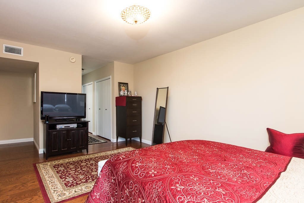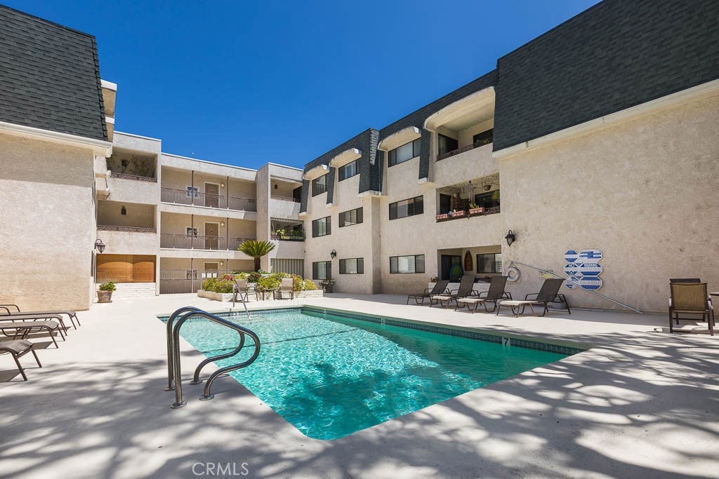 Top floor single level spacious 2 bedroom / 2 bathroom on a quiet tree lined street with views from treetops to the hills of Sherman Oaks! Open and bright unit updated and remodeled with private patio/balcony overlooking the peaceful courtyard. Kitchen with breakfast nook remodeled with rich dark cabinetry, granite counters and tile floors. Living room and dining room boast wood floors and recessed lighting. Master bedroom has a completely remodeled bath with stylish vanity, sink and decorator mirror as well as newly tiled shower. The hall bath has also been all redone with equally stylish fixtures and finishes. Well maintained building includes 2 open courtyards, sparkling pool and an elevator. 2 tandem parking spots + storage. Prime Sherman Oaks - Walk to Ventura blvd, coffee shops, shopping and dining.