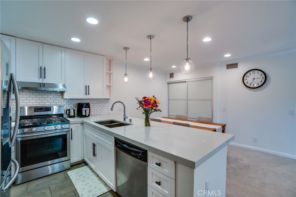 Welcome to this incredible Sherman Oaks condo opportunity in a prime location with quick access to the freeway and all the plethora of dining and shopping of the legendary Ventura Boulevard! The Palmia Complex boasts incredible amenities including a swimming pool, jacuzzi, outdoor community gas grill area and a common room complete with kitchen, dining, and living room for all your hosting needs! For pet owners, the private dog run provides a convenient space for furry friends to socialize and play. The unit is a prime third floor rear corner unit with an extended balcony. As you step into the open floor plan you are immediately greeted by ample natural light, a beautifully updated kitchen with oversized breakfast service counter, gas stove and oven and all stainless steel appliances. The living area features a true dining room area along with a large living room and a nicely appointed fireplace. The unit has three brand new dual pane sliders: one off the living room and one in each bedroom. The primary bedroom is large and has a very spacious and nicely appointed en-suite bathroom. The owner also recently replaced the HVAC system. The HOA has recently replaced the complex roof and the pool was recently resurfaced. The unit has a tandem parking accommodating 2 vehicles and in a gated controlled ground level community garage.