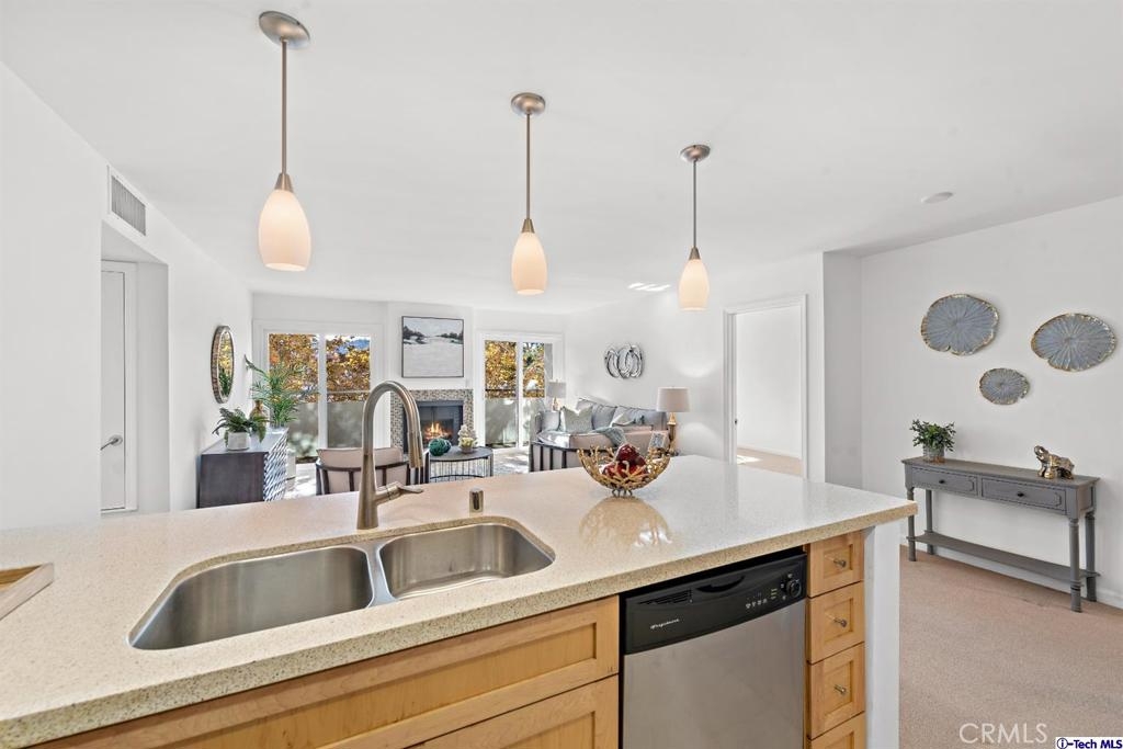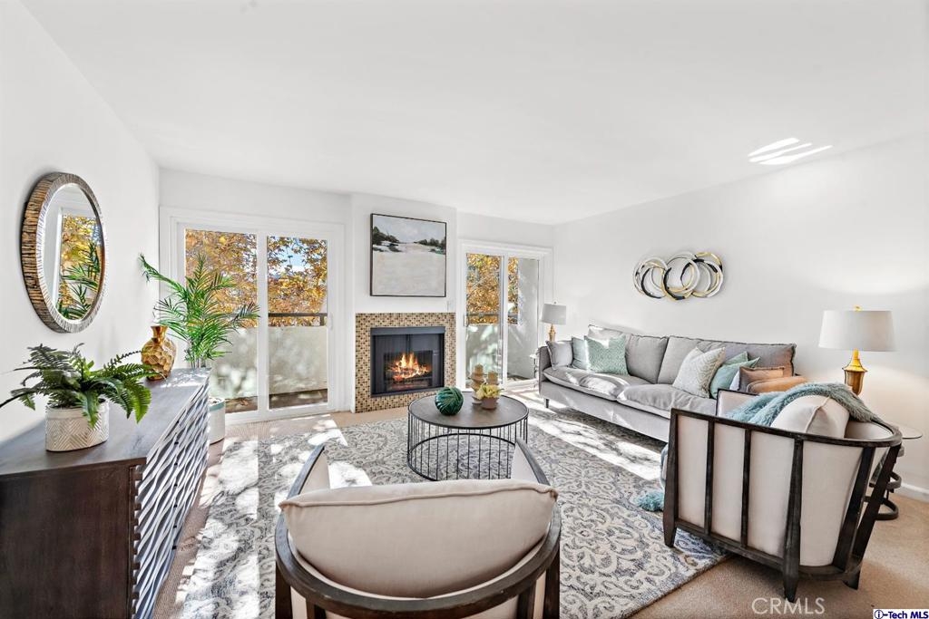 A beautiful, south facing (away from the freeway), 3-bedroom condo in Sherman Oaks! This top floor condo includes three spacious bedrooms, each with its own bathroom. Cool open floor plan features a large living room with a cozy fireplace and double balcony doors facing beautiful trees from the street. Modern kitchen features newer cabinets, countertop and breakfast bar. Convenient in-unit laundry space has newer Samsung washer and dryer. Water heater and HVAC units were recently replaced. HOA includes earthquake insurance, pool, BBQ, gym, a community room and secure parking. Markets, eateries and trendy shopping centers are all within a few blocks.